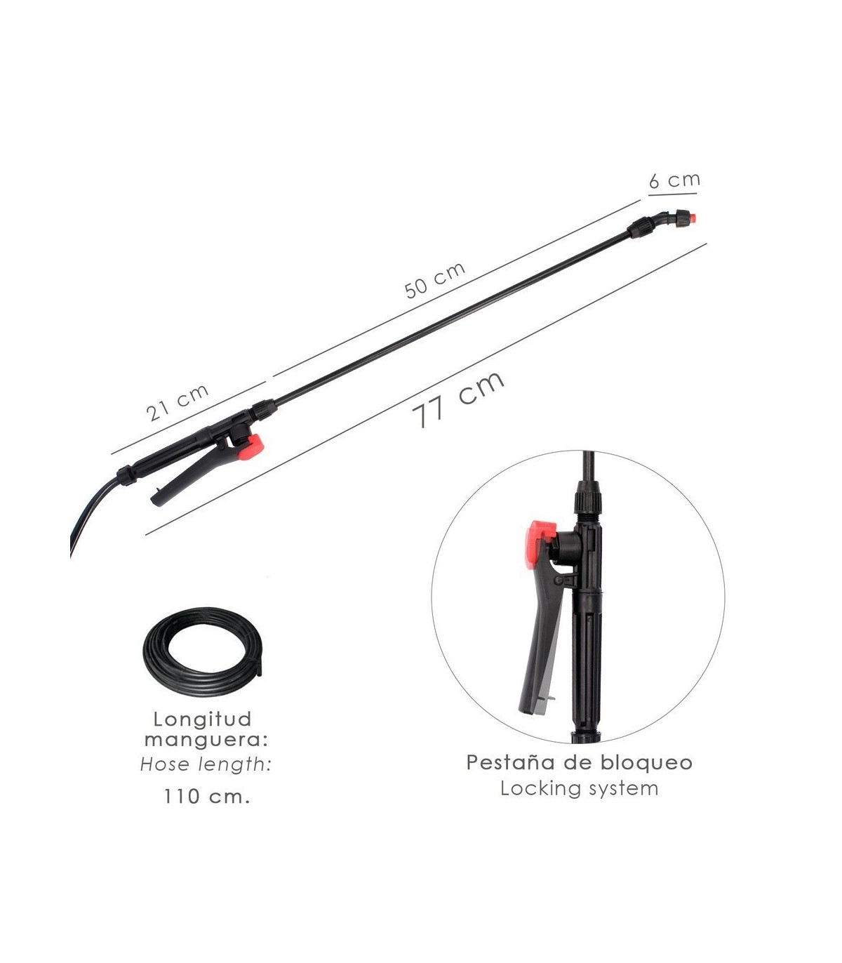 - Lanza: Equipada con chorro ajustable para una aplicación precisa y controlada.