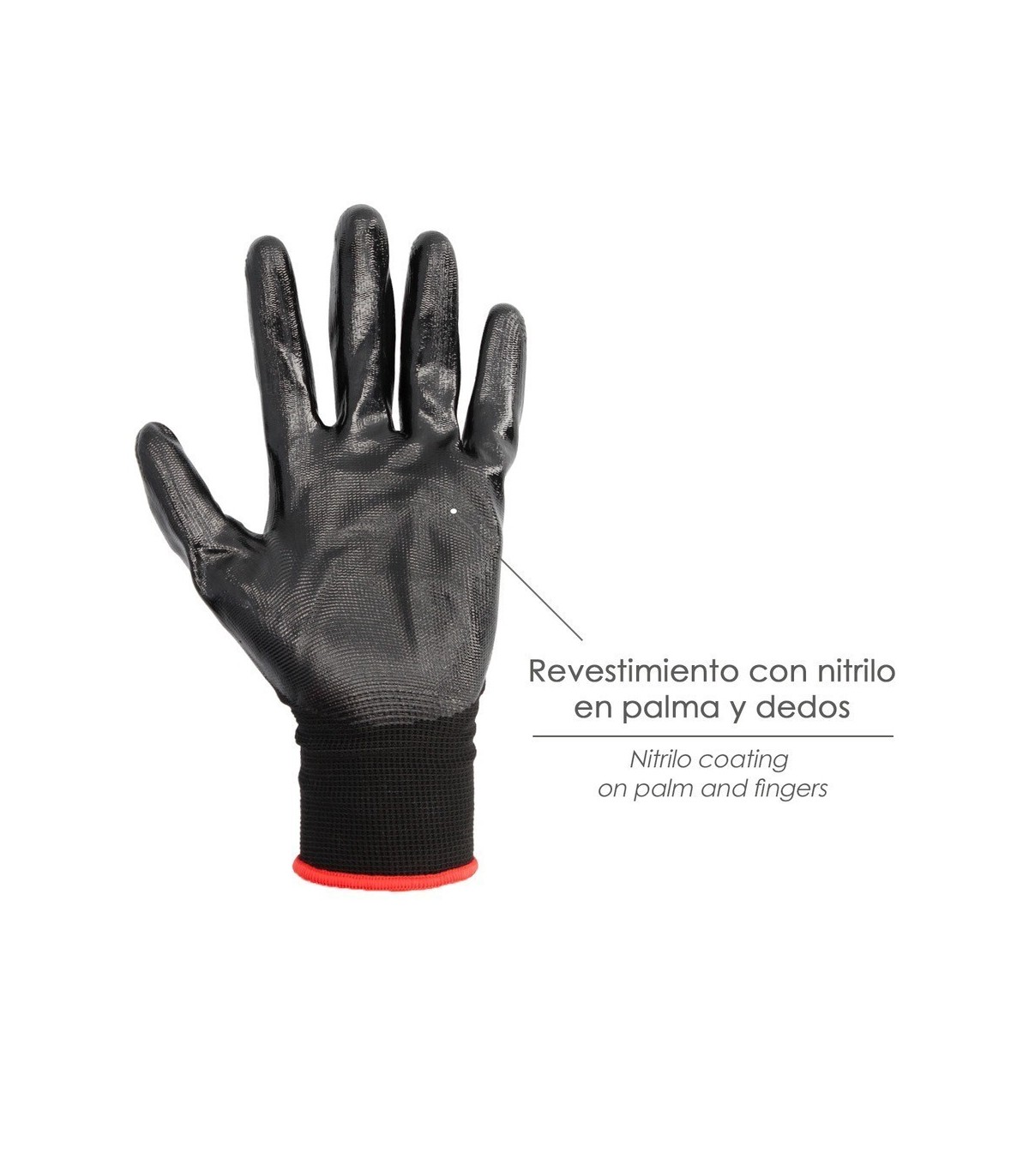 - Guante de Nylon revestido con nitrilo en palma y dedos