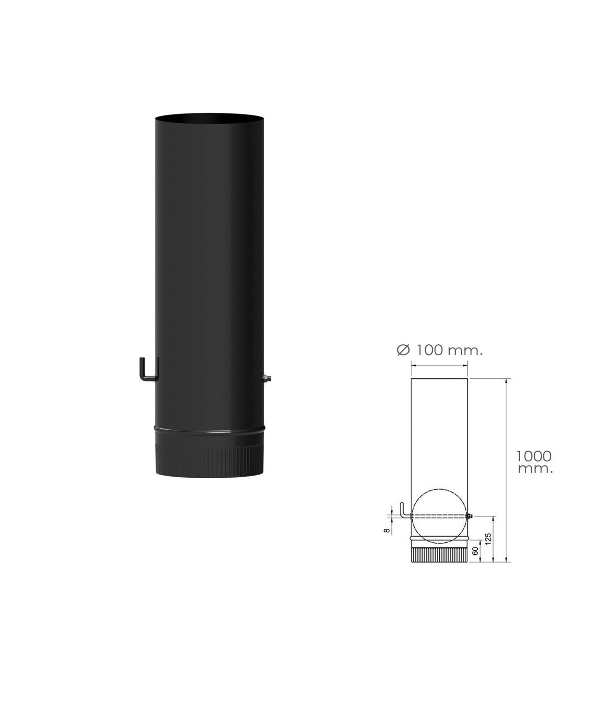 Tubo de Estufa Acero Vitrificado Negro Diámetro 100 mm. Con llave Estufas de Leña, Chimenea, Alta resistencia, Color Negro