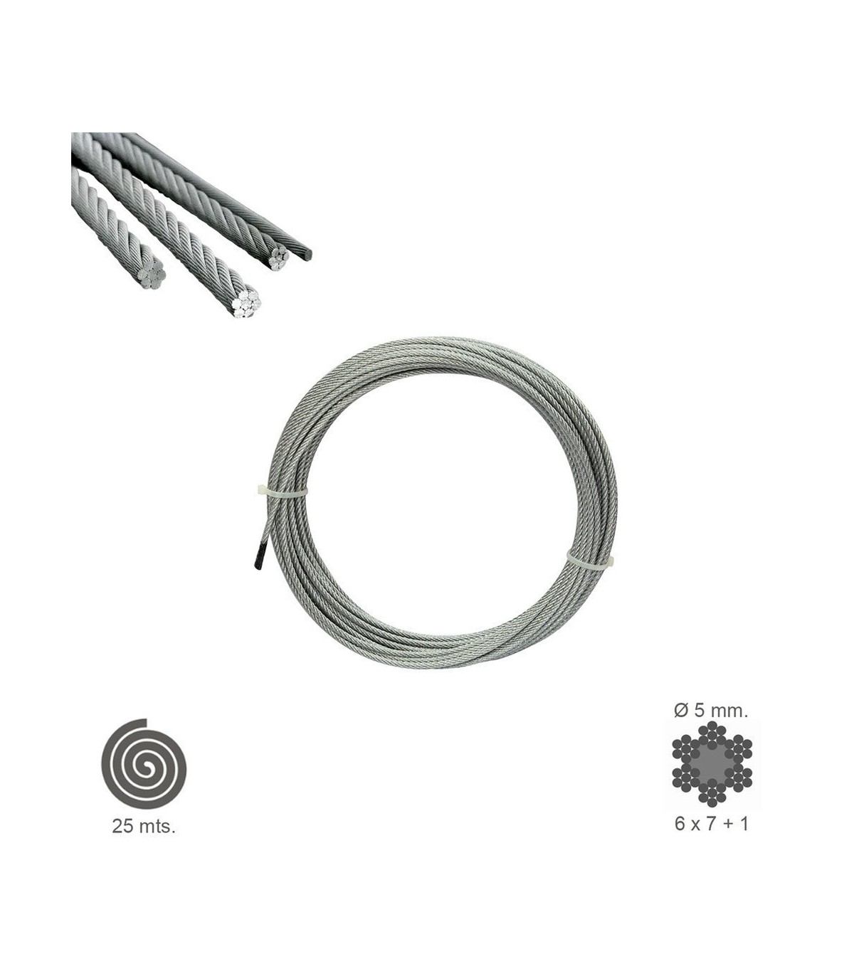 Cable Galvanizado 5 mm. (Rollo 25 Metros) No Elevación