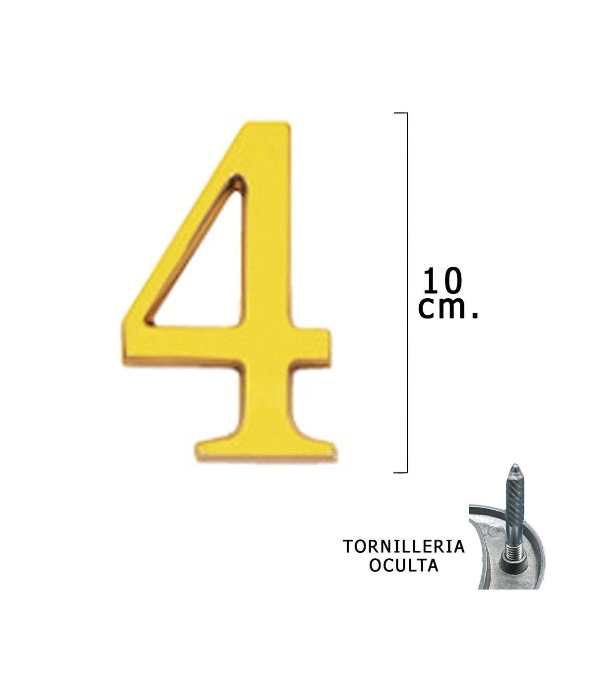 Numero Latón "4" 10 cm. con Tornillería Oculta (Blíster 1 Pieza)