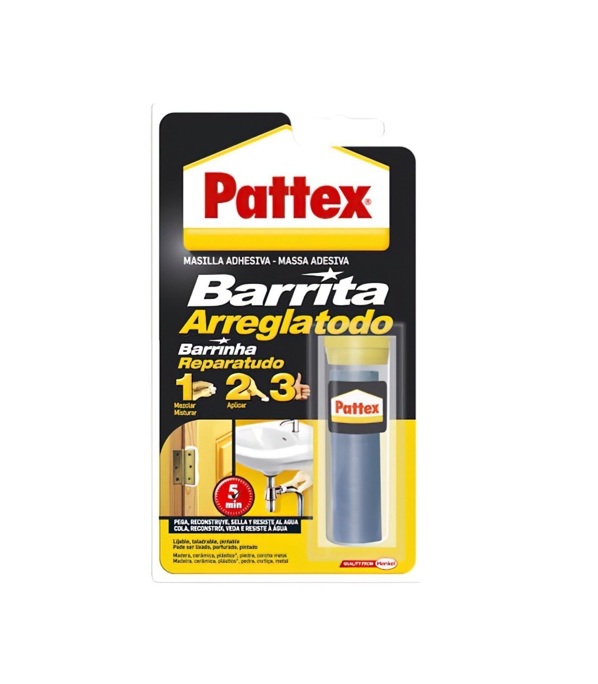 - Blanco una vez seco. Para el hogar, el jardín, el taller y el automóvil. No contiene disolventes. Reconstruye, pega y sella. Atemperar el producto antes de amasar favorece su aplicación. Debe ser aplicado antes que la masa empiece a calentarse (3 minutos máx.).