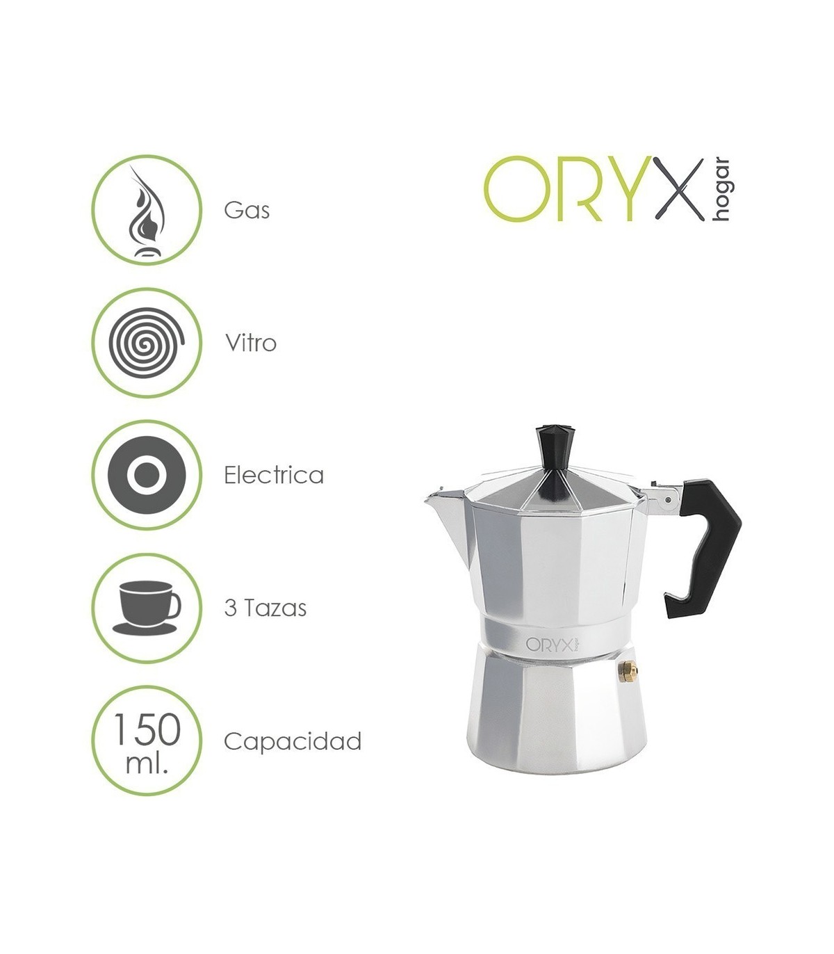 - Capacidad para 3 tazas de café (150 ml.)
