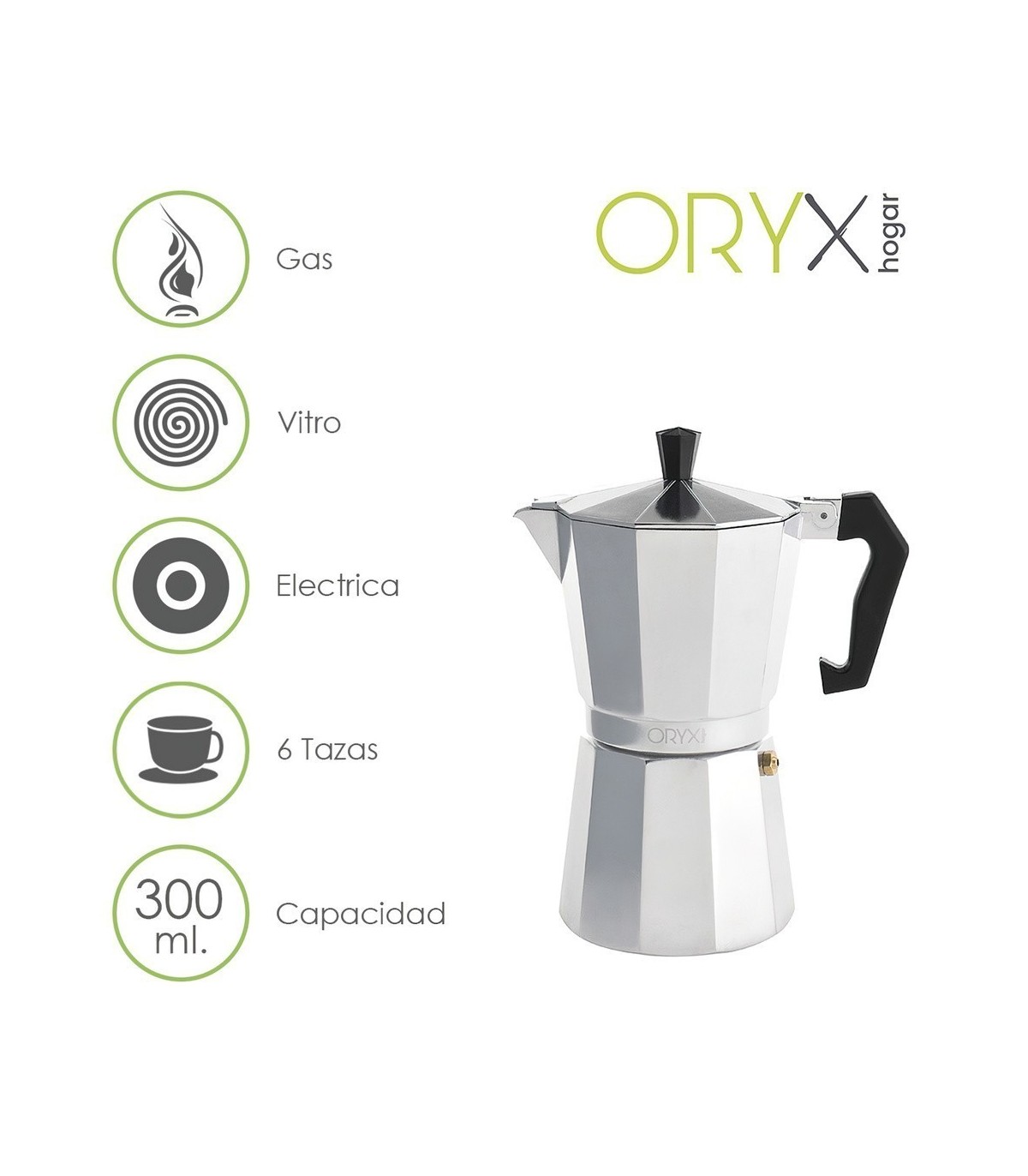 - Capacidad para 6 tazas de café (300 ml.)