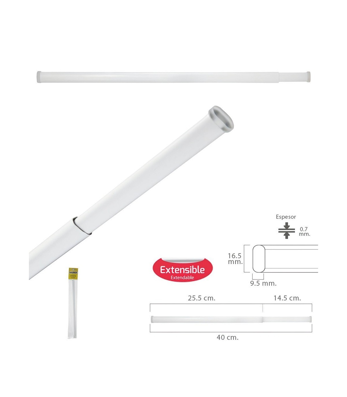 - Medida del tubo alto x ancho: 16.5x9.5 mm.