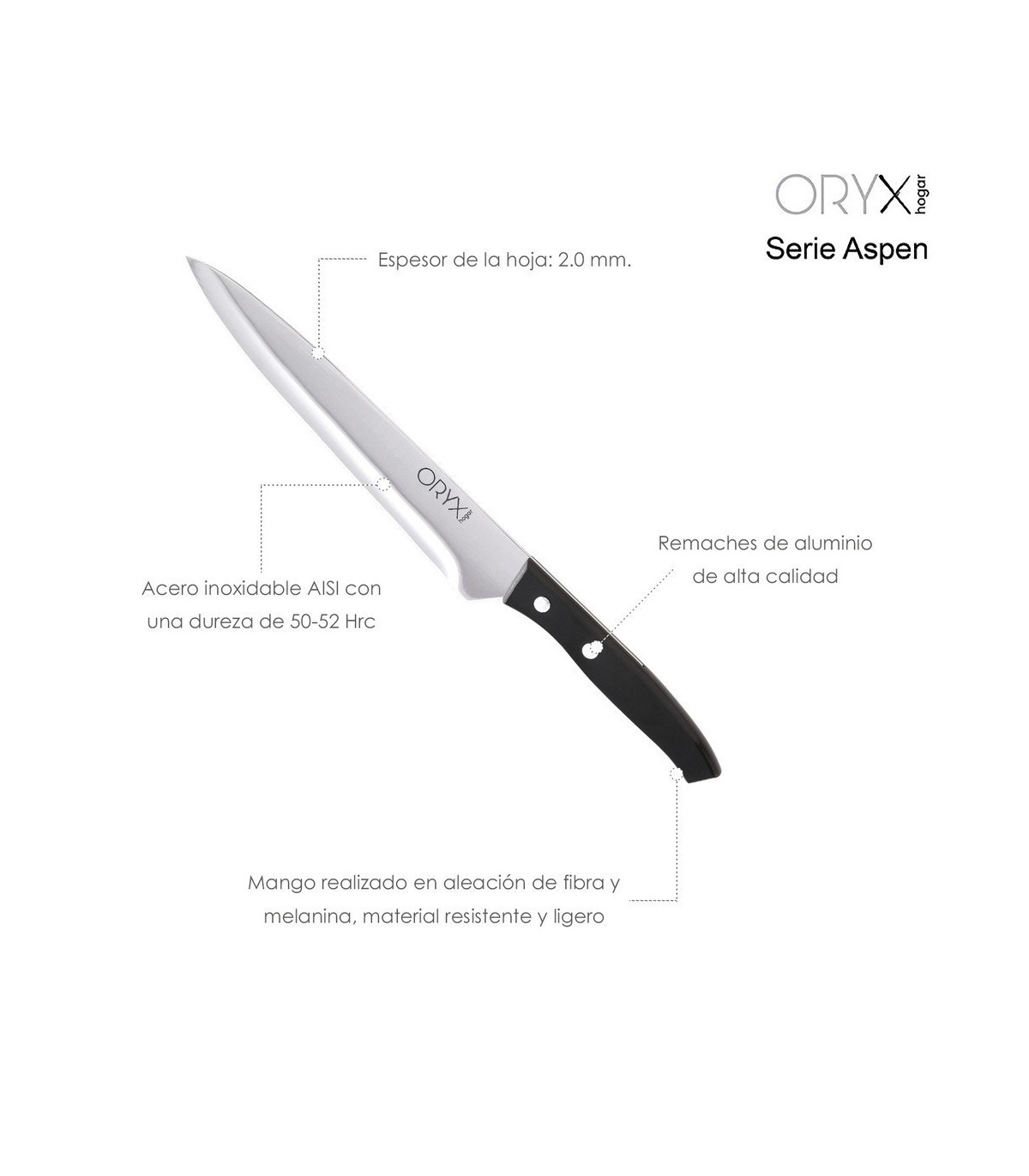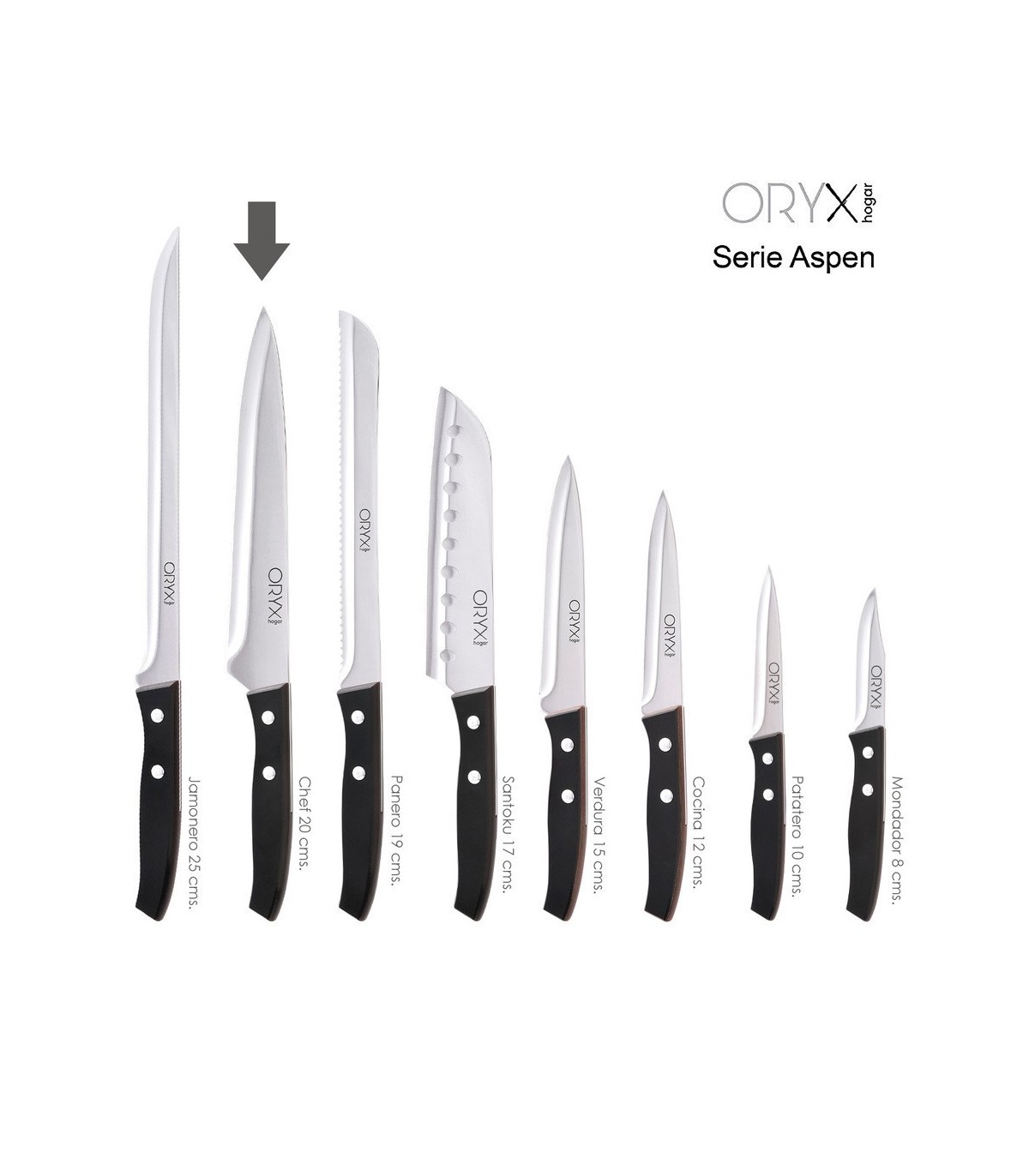 - La serie Aspen destaca por el equilibrio de sus cuchillos teniendo el centro de gravedad idóneo, usando estos cuchillos te sentirás cómodo para realizar los mejores cortes.