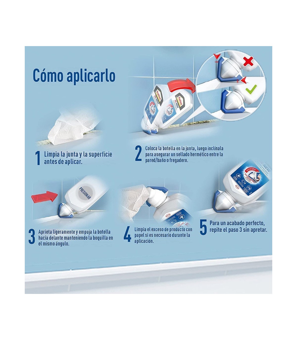 - Adhesión perfecta sobre silicona y blanqueador para cubrir todos los selladores