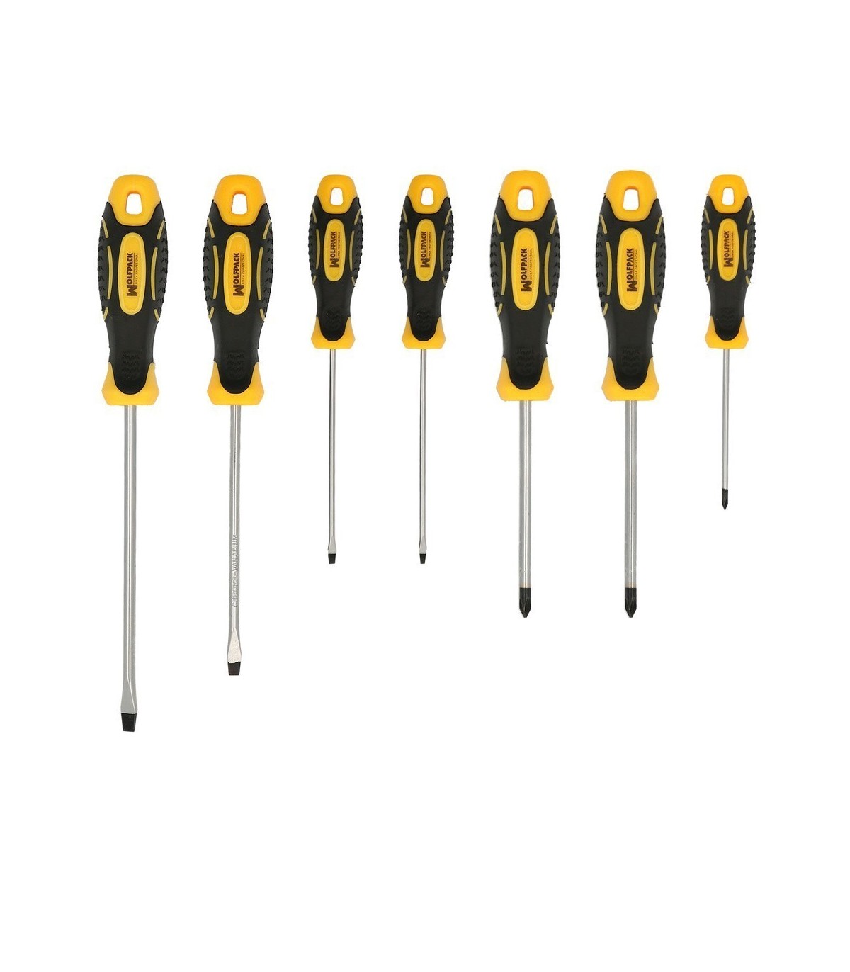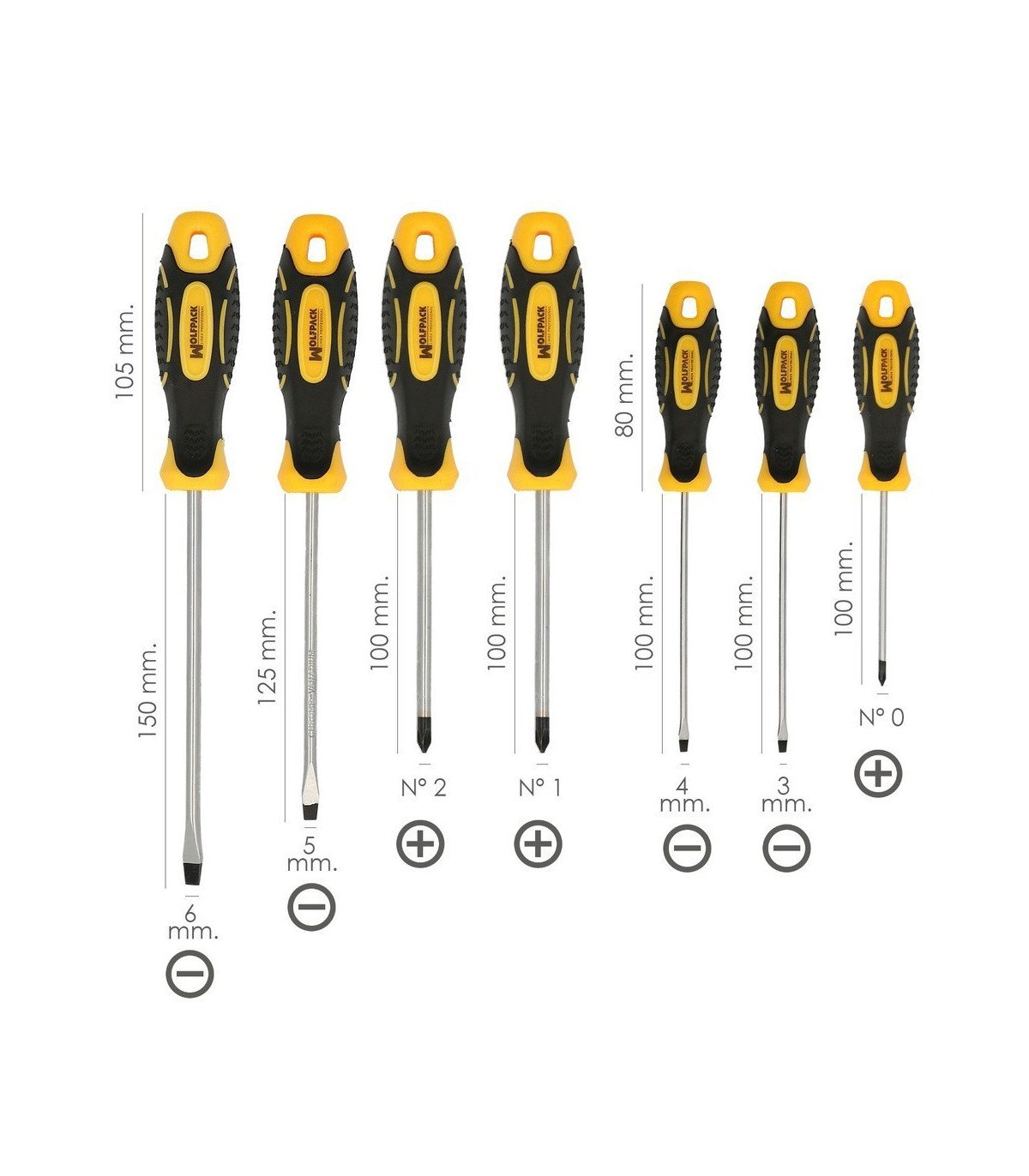 - Artículo conocido como set destornilladores, destornilladores planos, destornilladores estrella, juego destornilladores variados, etc..