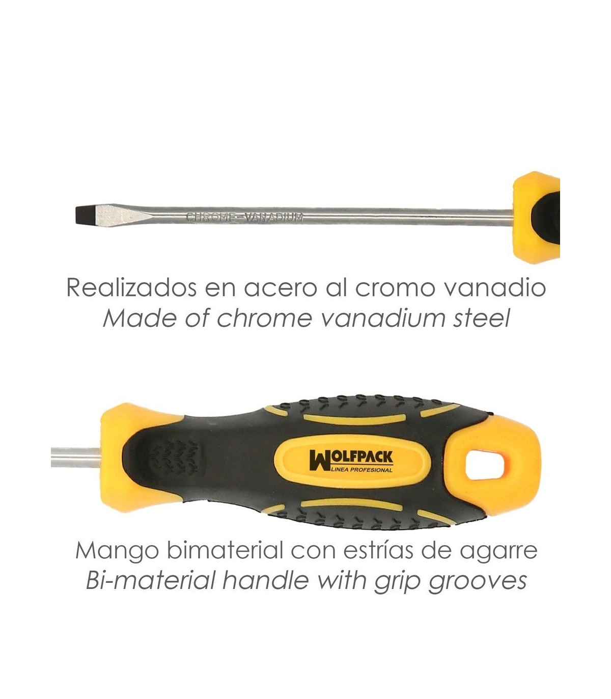 - Mango bimaterial con estrías, ayudando a una mejor sujeción.