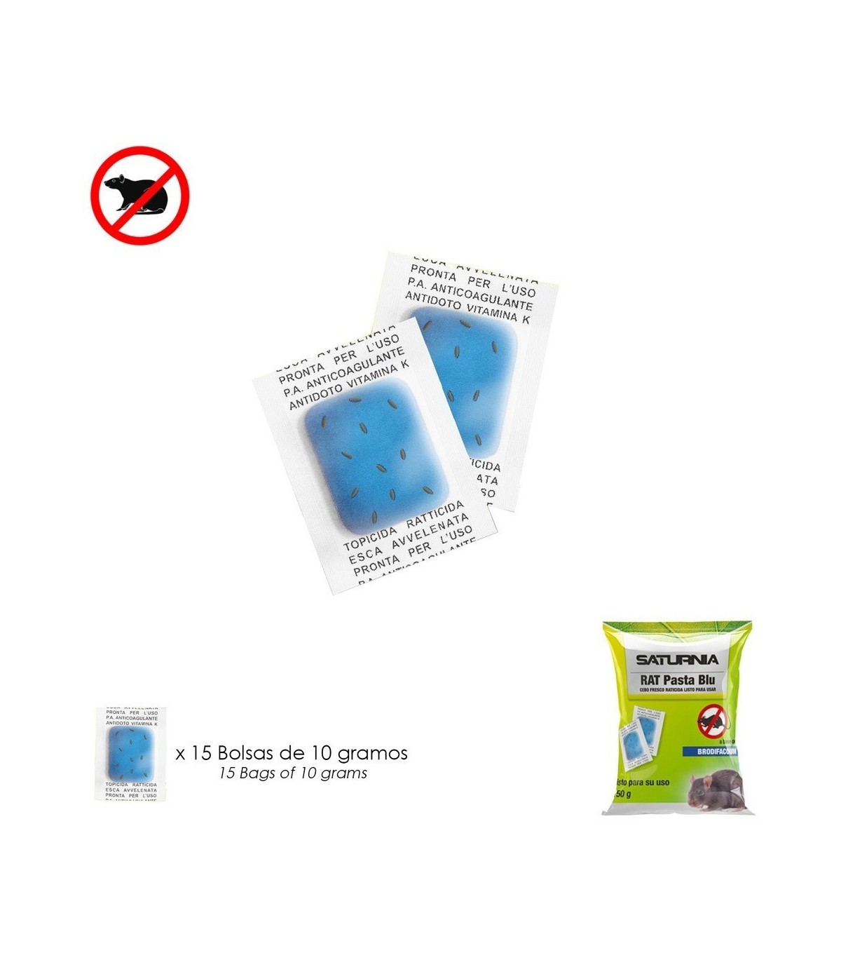 Cebo Raticida Fresco 150 gr, Rat Pasta Blue, Dosis Individuales 15x10 gr