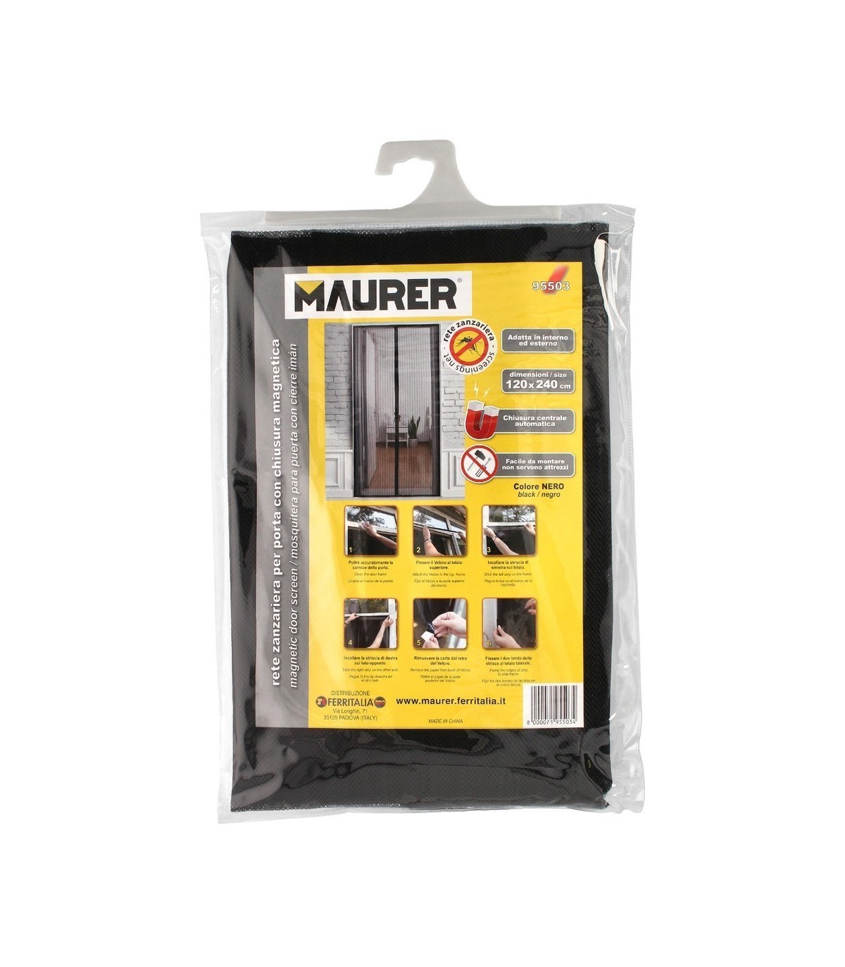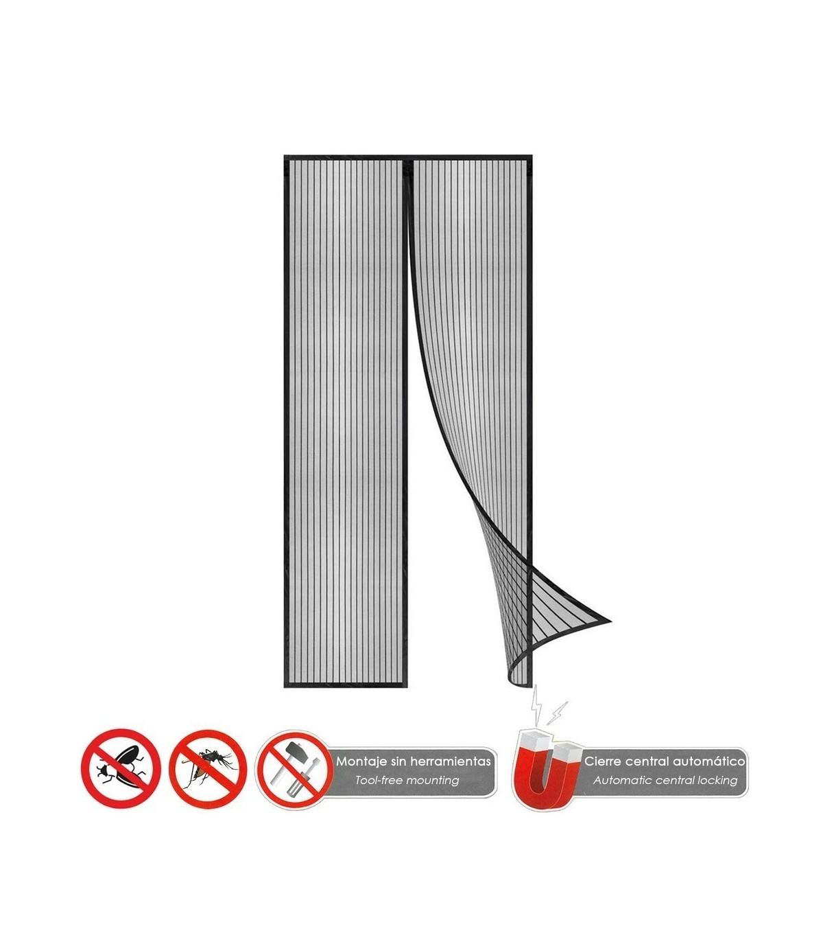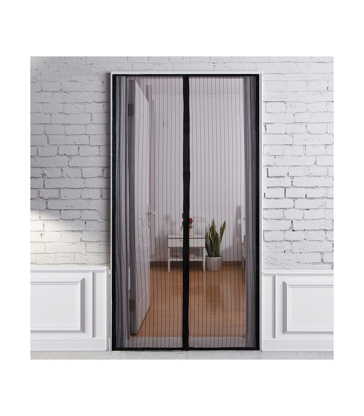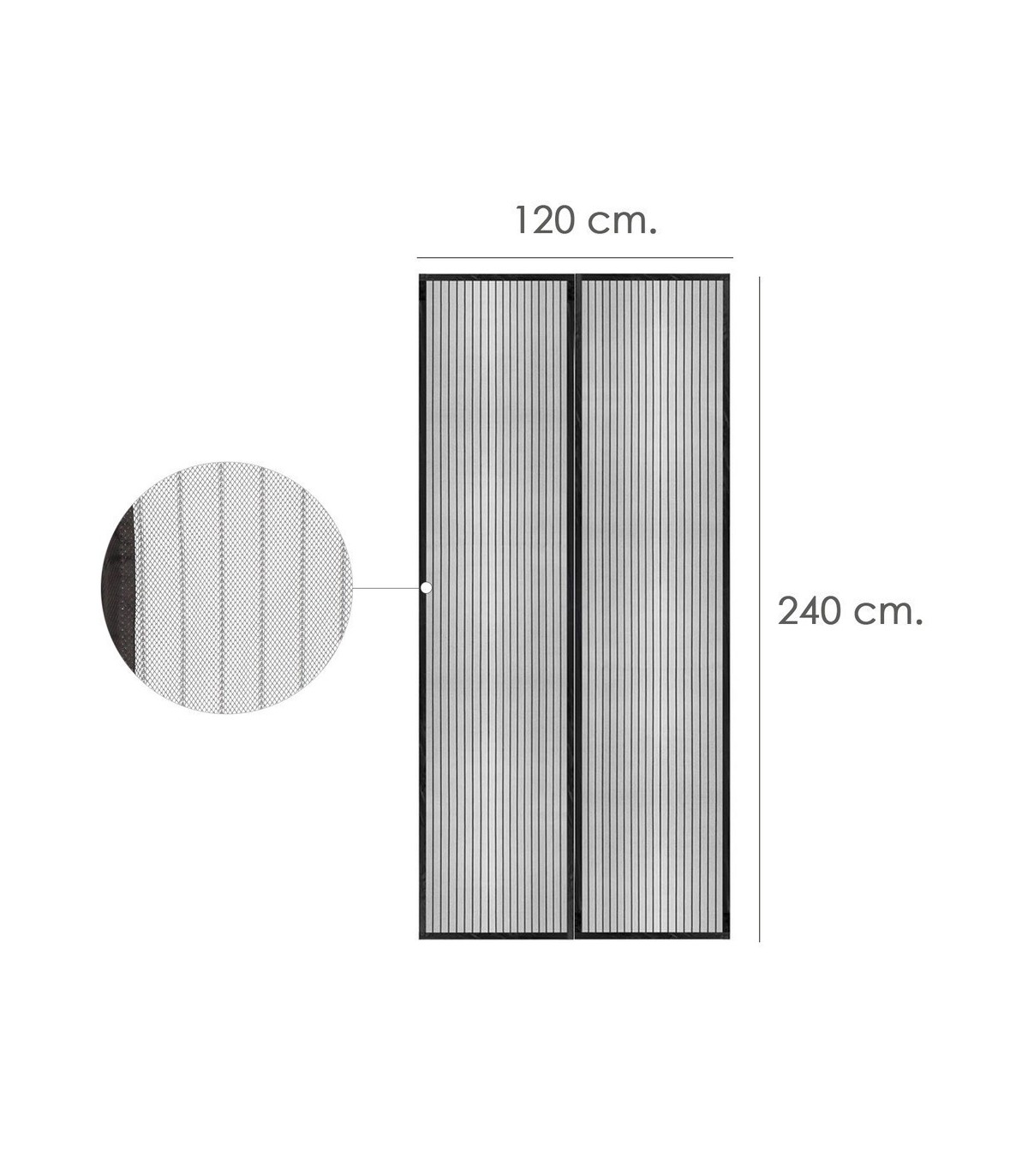 Cortina Mosquitera Para Puertas Con Cierre Central Magnético Automático 120 x 240 (Alt.) cm. Color Negro.