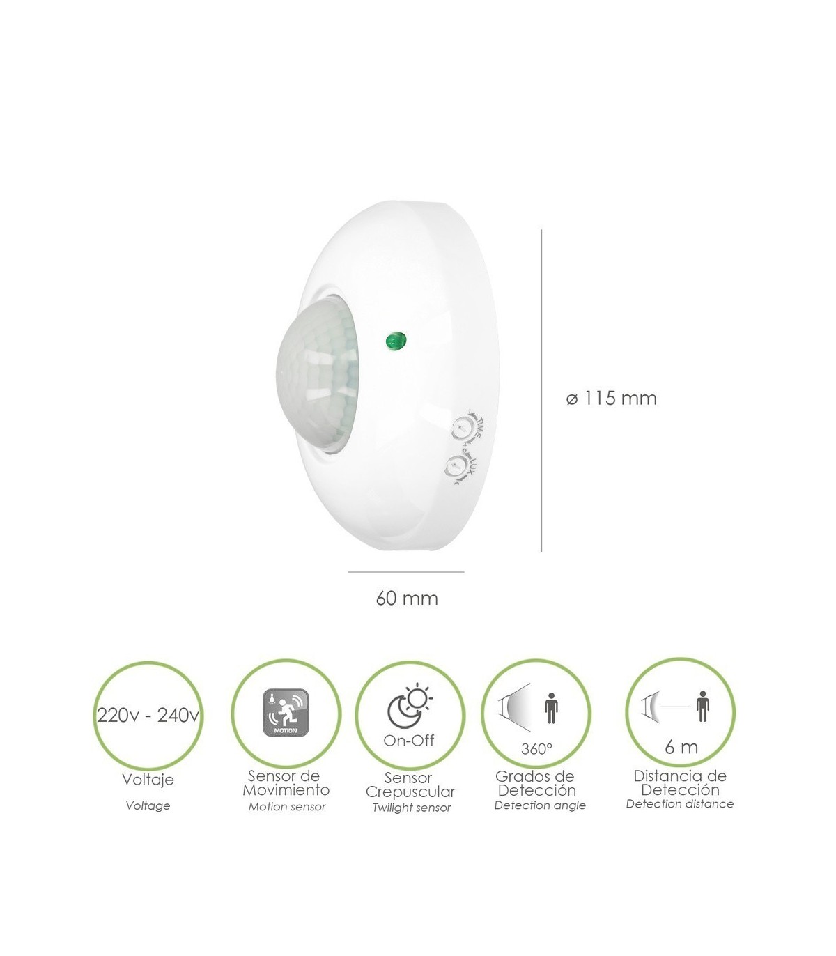 Detector De Movimiento Con Sensor Crepuscular 360º