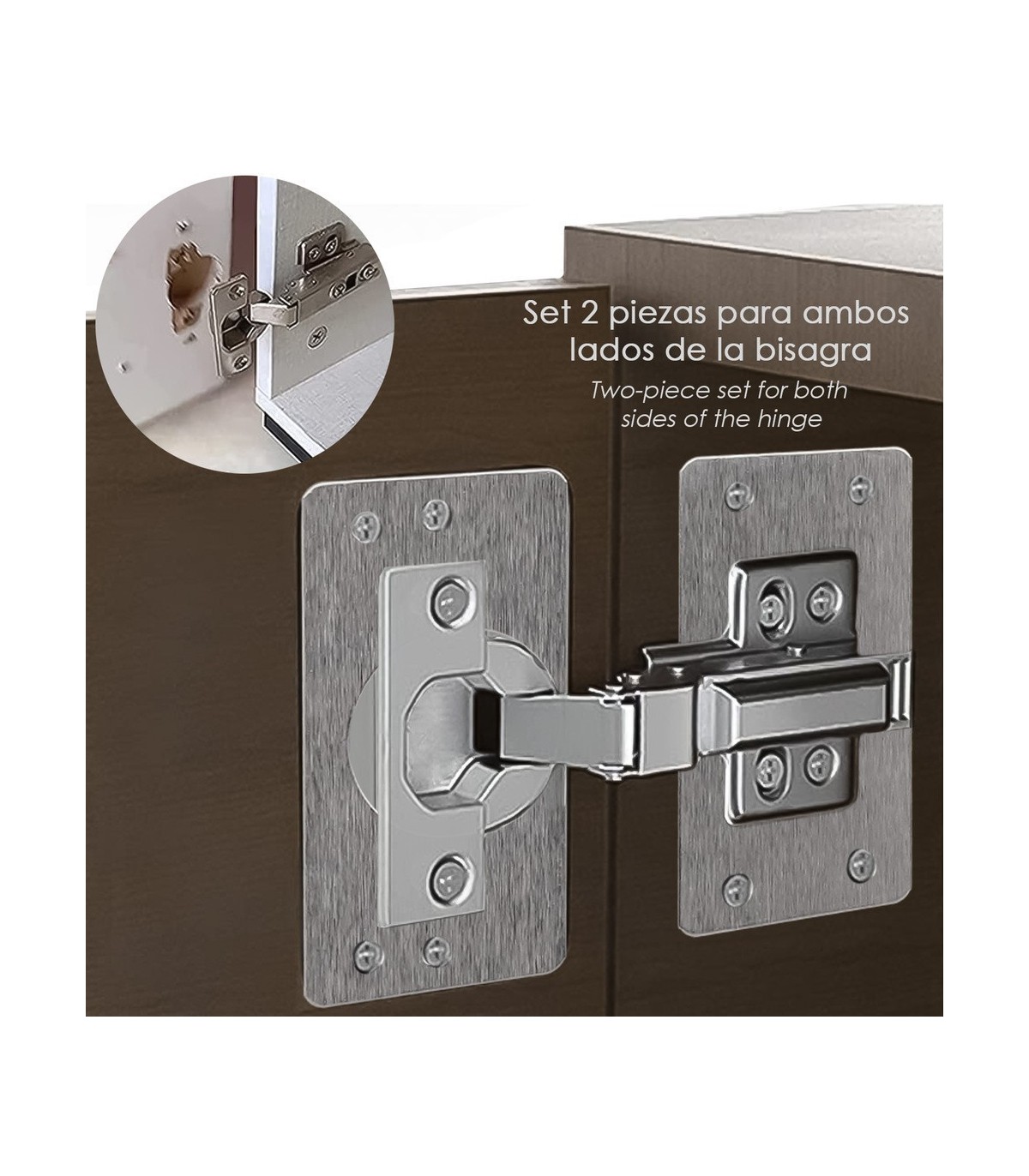 - Set de 2 piezas, puede reparar ambas partes del mueble, ya sea la parte que sujeta la bisagra al mueble, o bien la bisagra que sujeta la puerta.