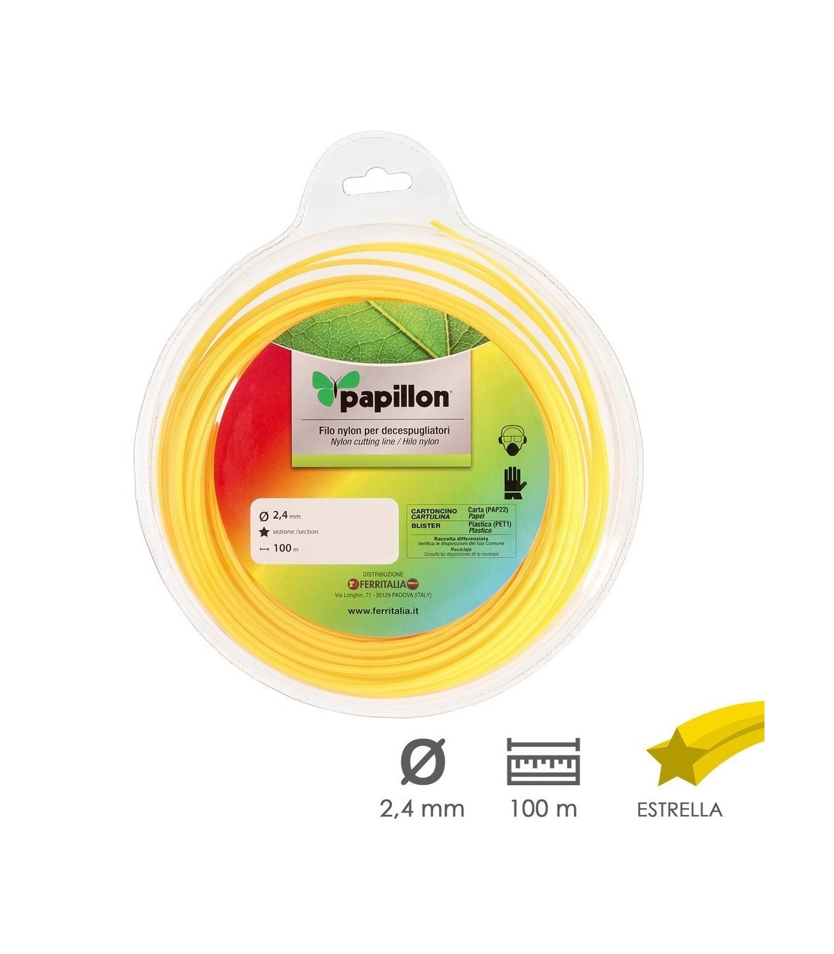 Hilo Nylon Desbrozadoras Estrella Diámetro 2,4 mm. Rollo 100 metros. Hilo Nylon Corte Desbrozadores Hierba, Jardín, Maleza