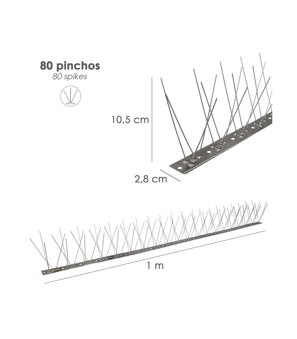 Pincho Anti Palomas / Pájaros 1 Metro Inoxidable Pincho Doble 80 Pinchos. Adaptable a Varias posiciones