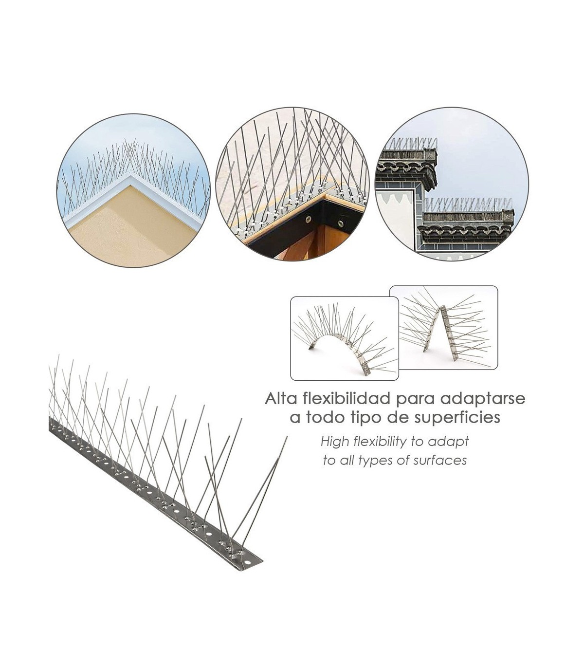 - Pinchos dobles para evitar el posado de aves.