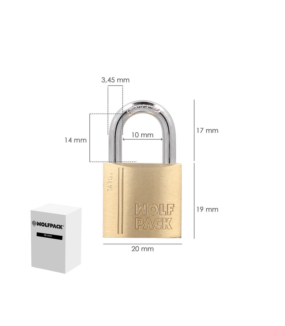 Candado Latón Arco Normal 20 mm. Serie Target. Arco Endurecido. Candado Maletas, Candado Taquillas, Candado Puertas