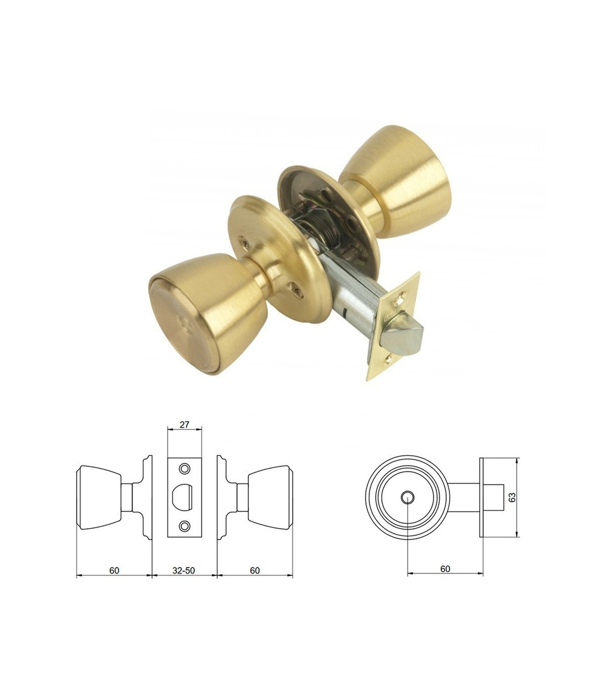 - Cerradura de pomo para puerta de paso. Pomo libre por el exterior e interior.