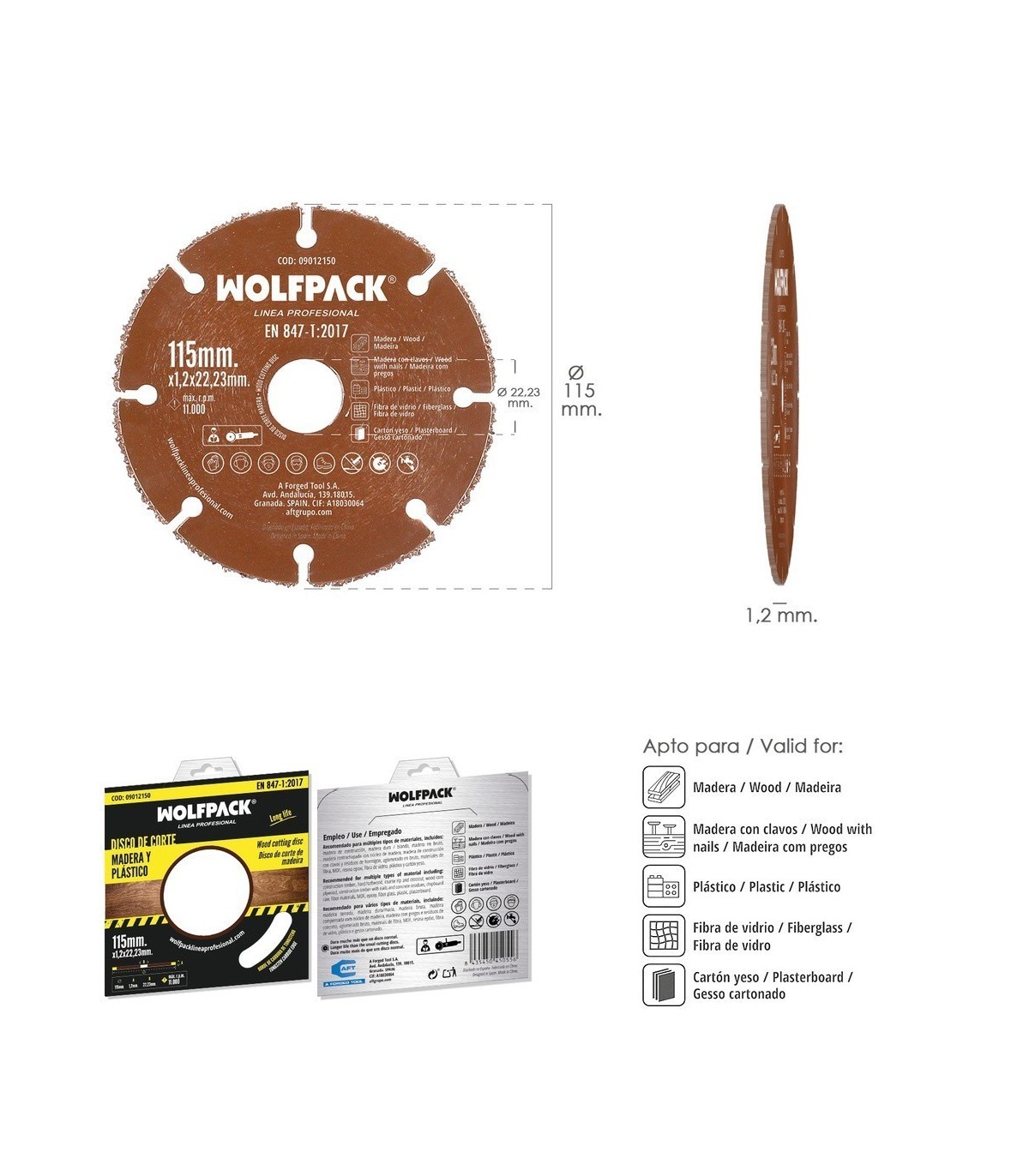 Disco Corte Madera / plástico Diámetro 115 mm. Filo De Carburo De Tungsteno