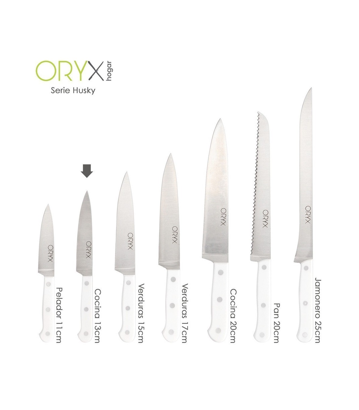 Cuchillo Husky Cocina 13 cm. Hoja Acero Inoxidable, Cuchillo Carne, Cuchillo Pescado, Cuchillo Chef, Mango Ergonómico Blanco