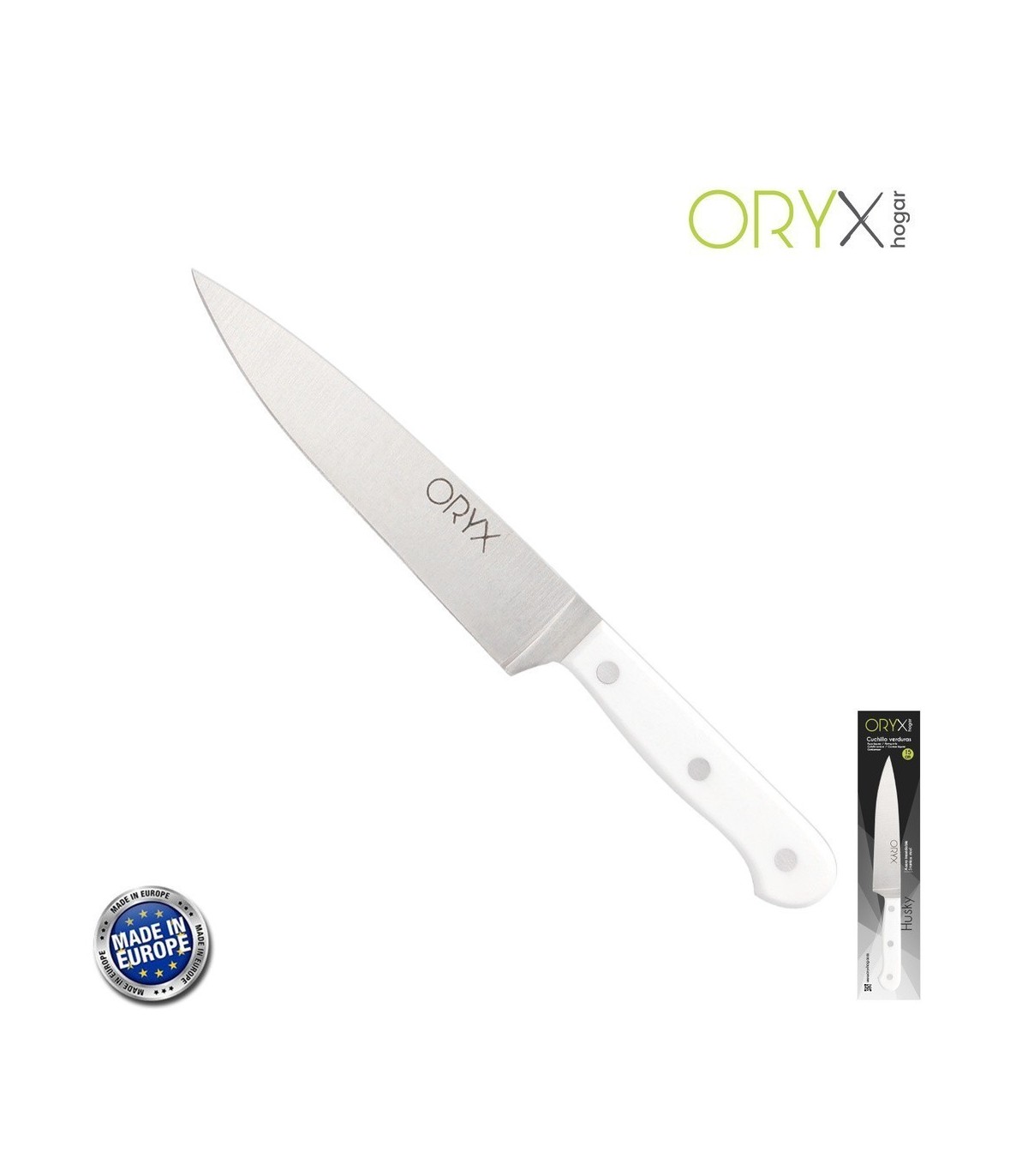 Cuchillo Husky Verduras 15 cm. Hoja Acero Inoxidable, Cuchillo Verduras, Cuchillo Cortar Verduras Mango Ergonómico Blanco