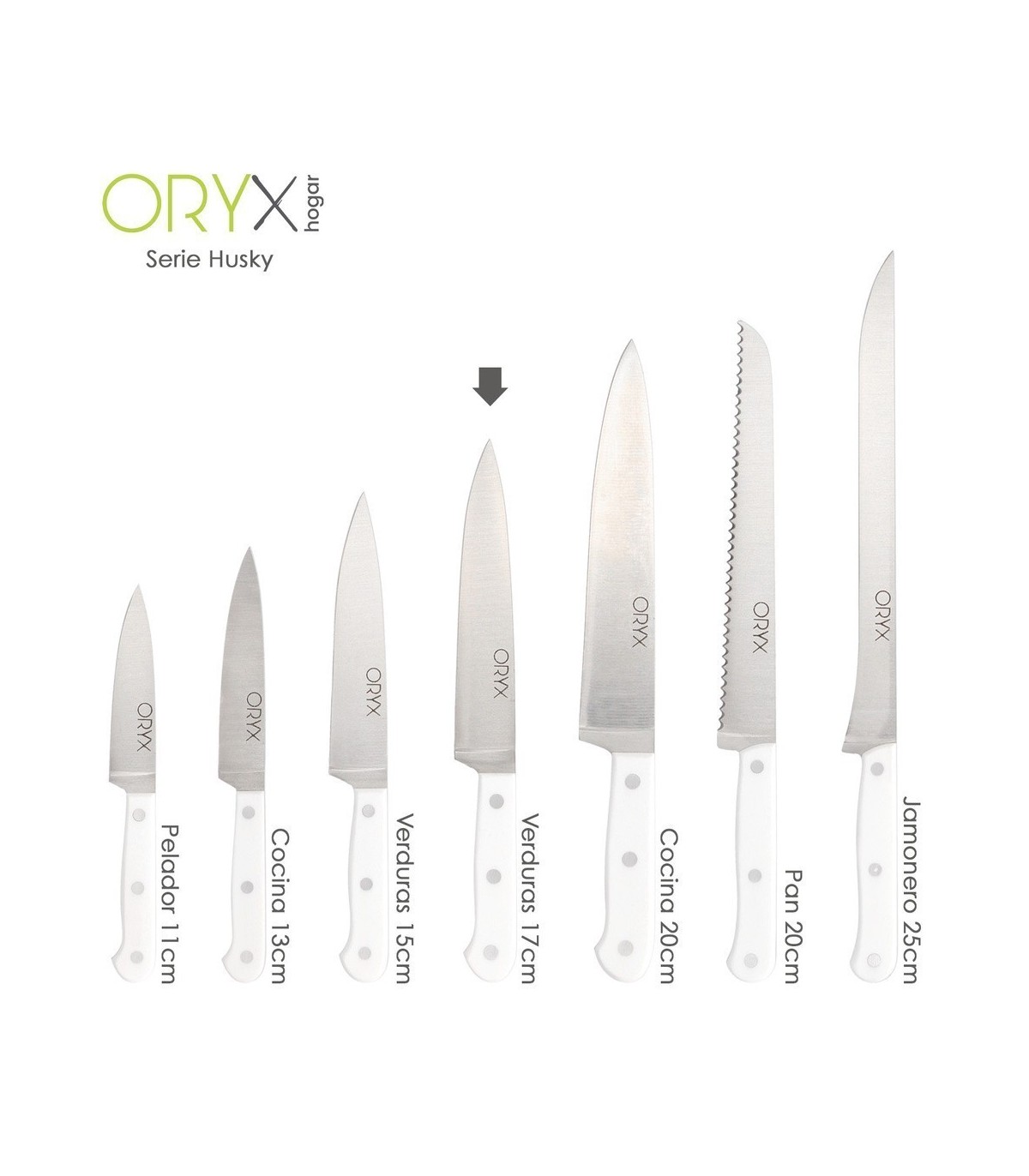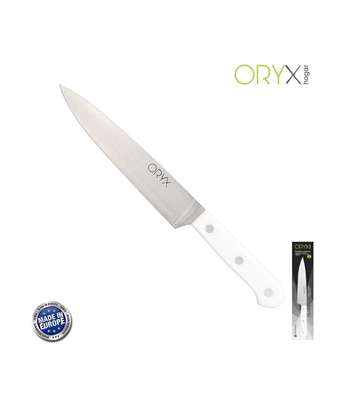 Cuchillo Husky Verduras 17 cm. Hoja Acero Inoxidable, Cuchillo Verduras, Cuchillo Cortar Verduras Mango Ergonómico Blanco