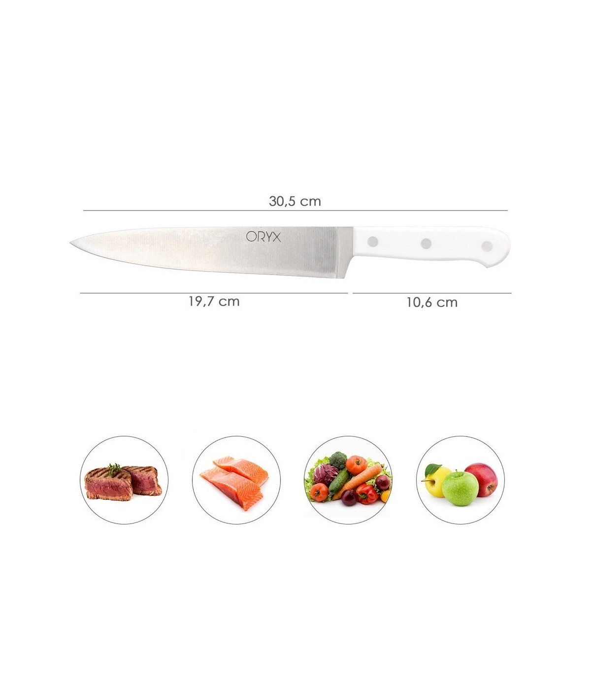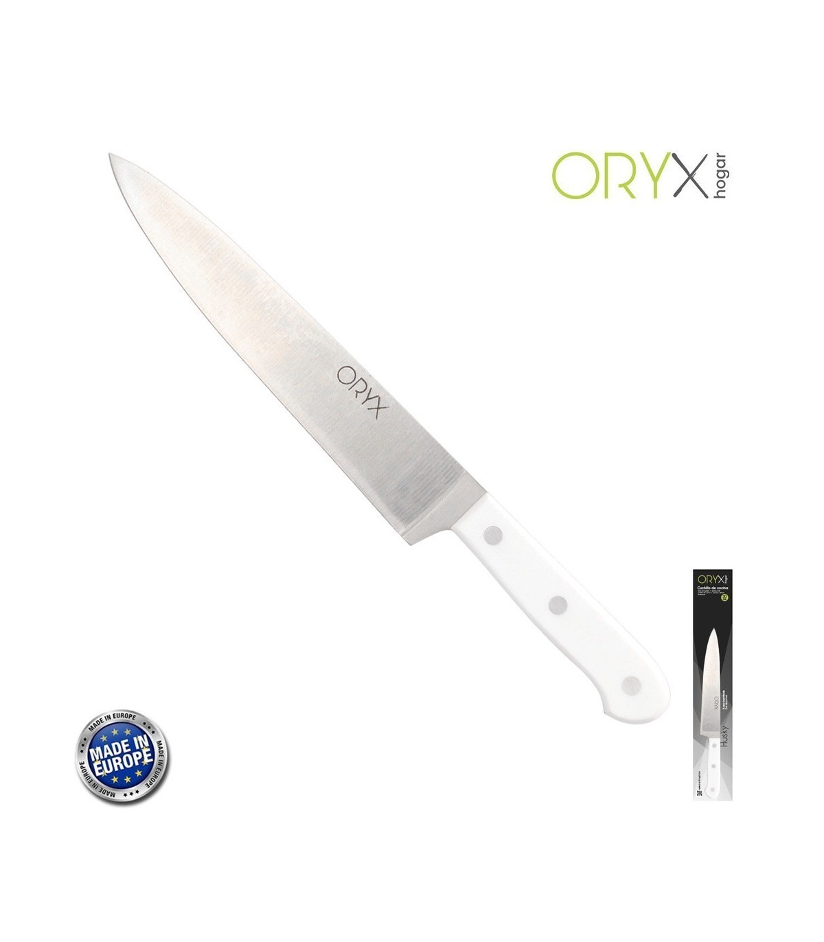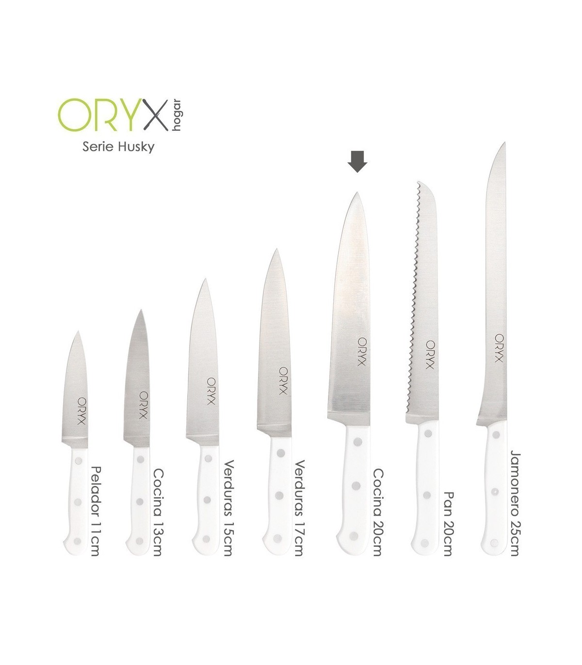 Cuchillo Husky Cocina 20 cm. Hoja Acero Inoxidable, Cuchillo Carne, Cuchillo Pescado, Cuchillo Chef, Mango Ergonómico Blanco