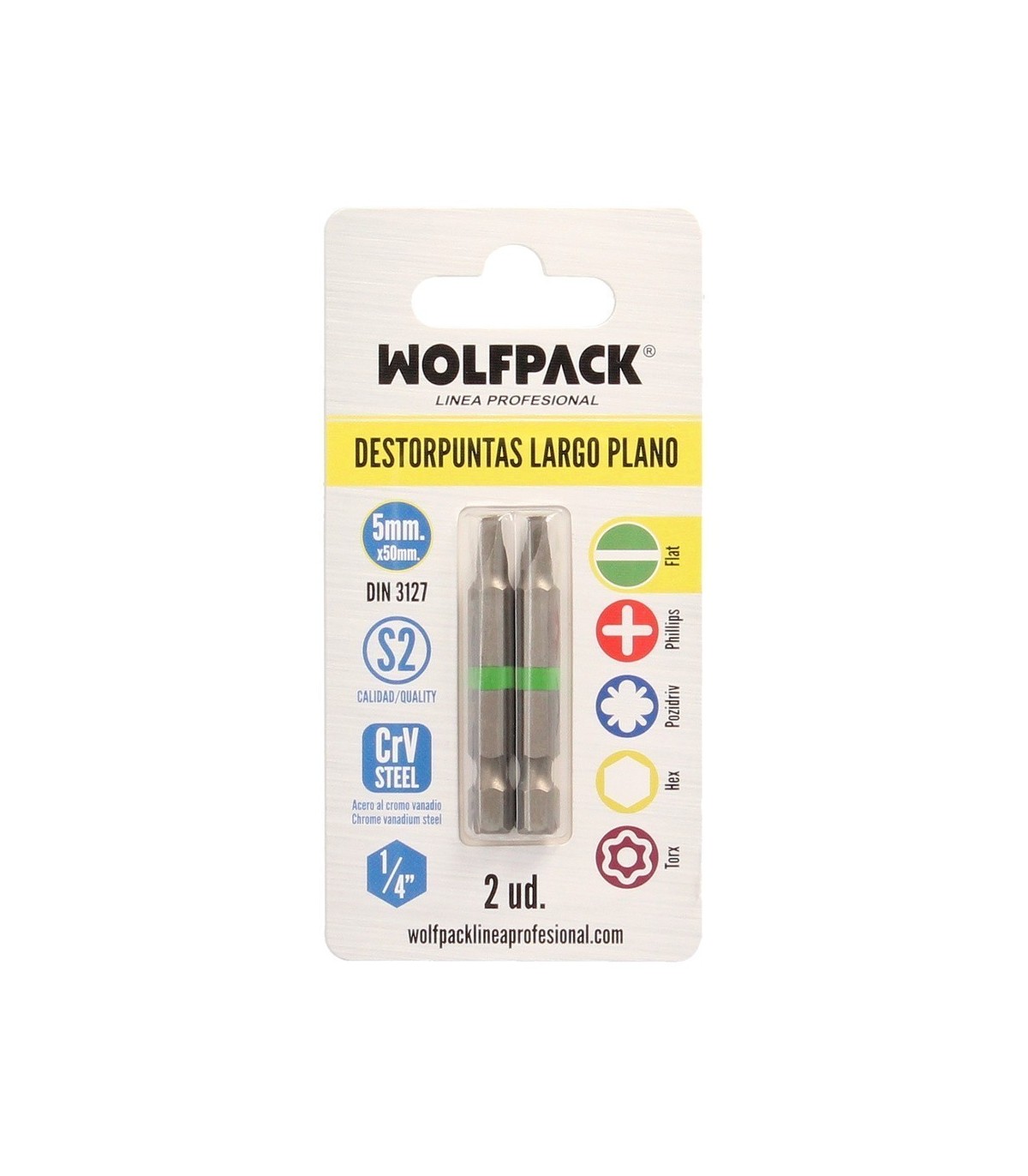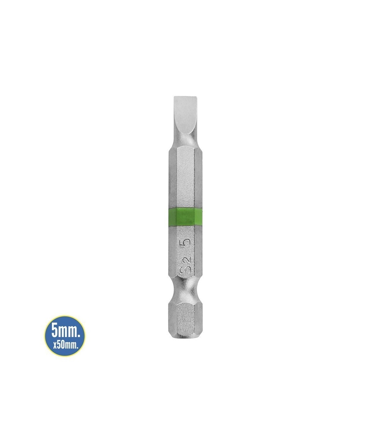 Puntas Destornillador Largo Plano 5 mm. (2 Piezas). Acero S2 al Cromo Vanadio. Puntas Hexagonales, Destorpuntas,