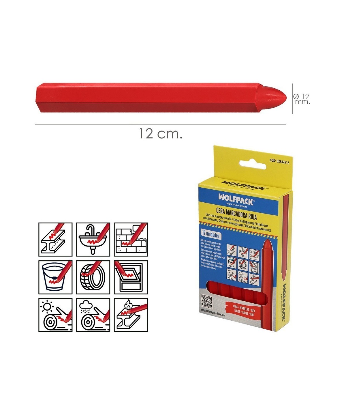 Cera Marcadora Roja (Caja 12 Piezas) Cera Trazadora, Marcador Industrial, Marcador Metal, Marcador Piedras