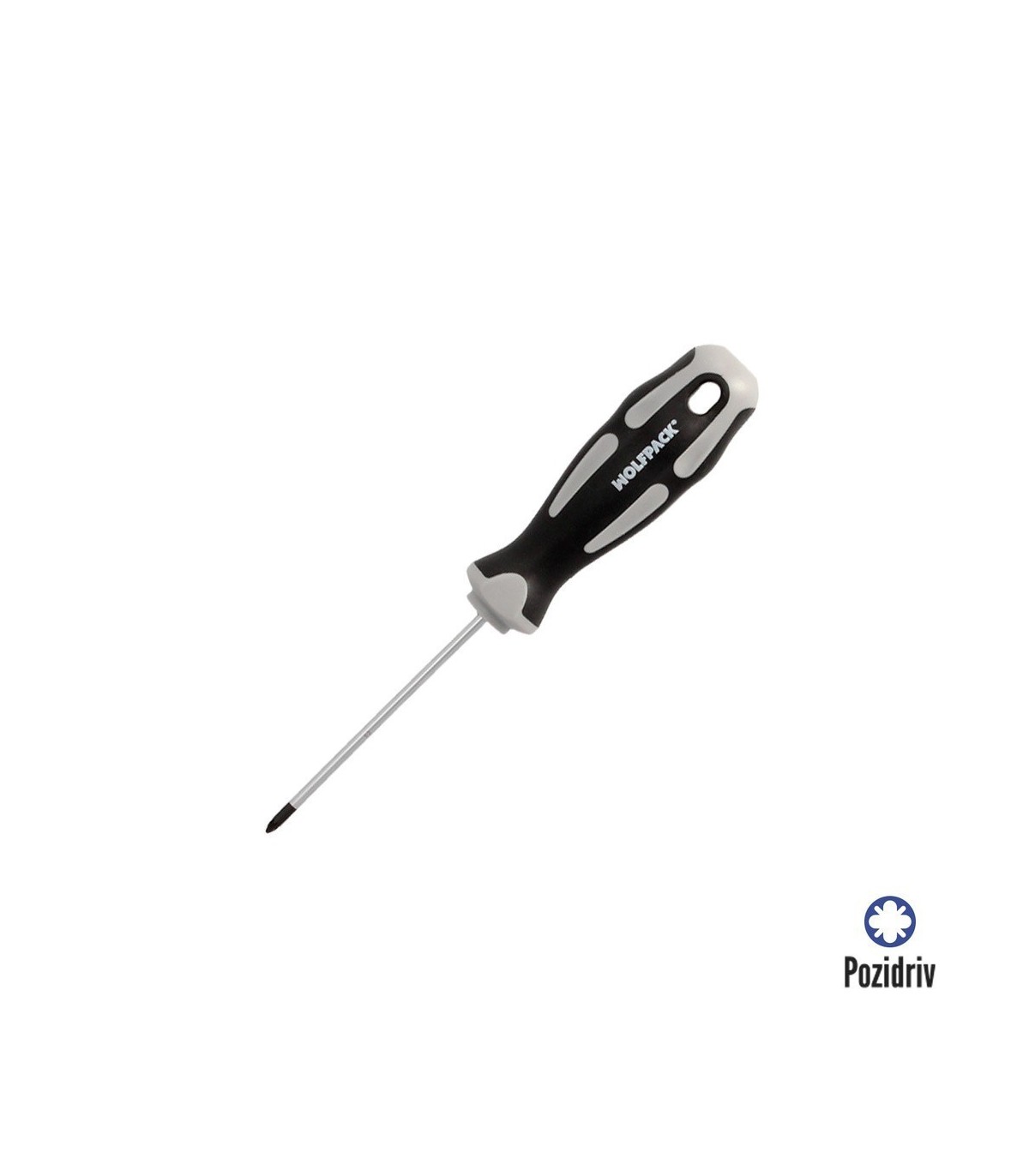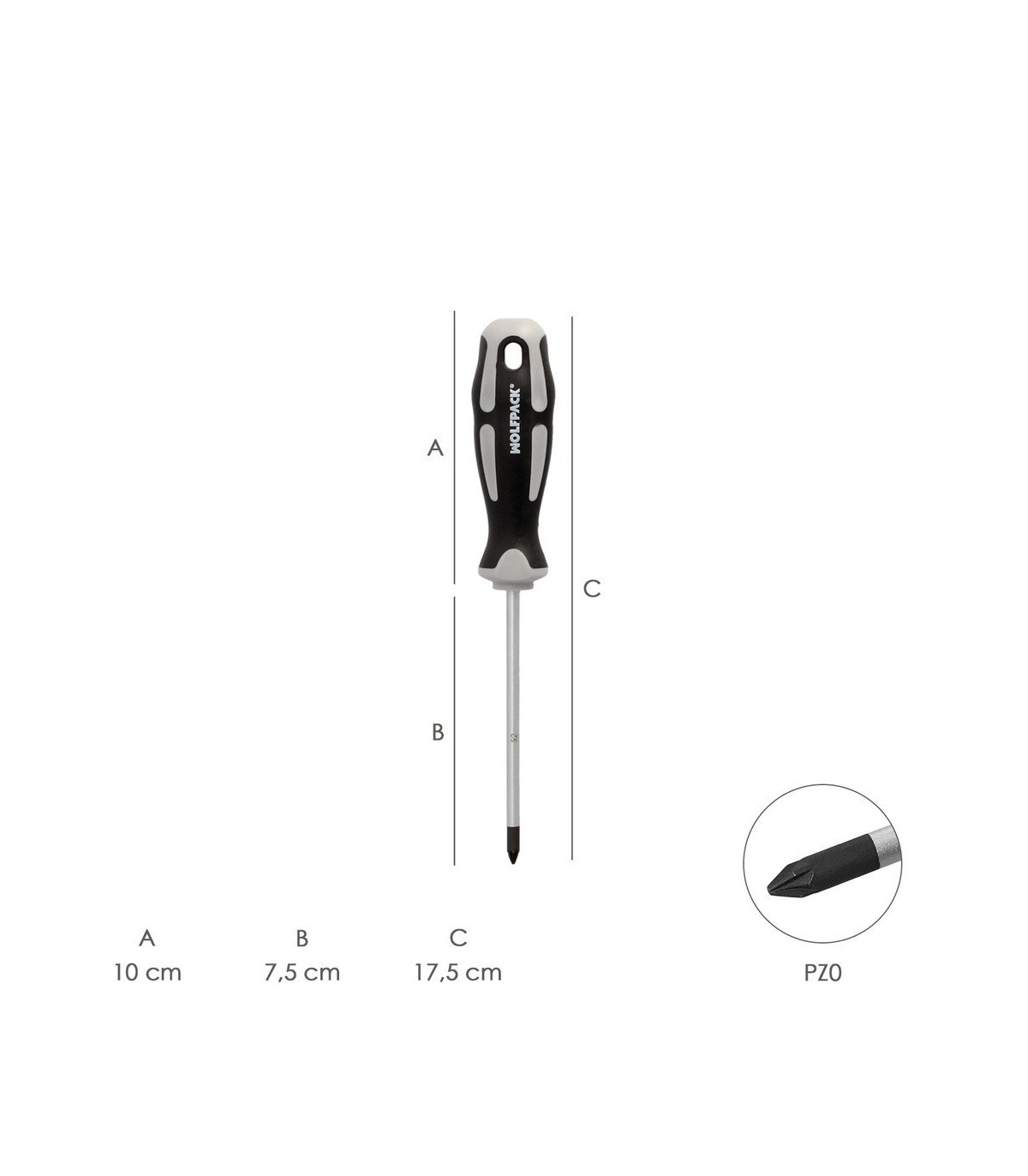 Destornillador Pozidriv Acero S2 Mango TPR Bimaterial. Medida pza. 0 x Diámetro 3,0 x 75 mm. DIN5262.