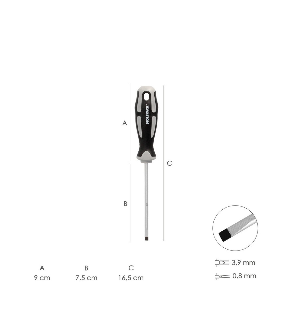 Destornillador Plano Vaciado Acero S2 Mango TPR Bimaterial. Medida 0,8 x Diámetro 4,0 x 75 mm. DIN5265