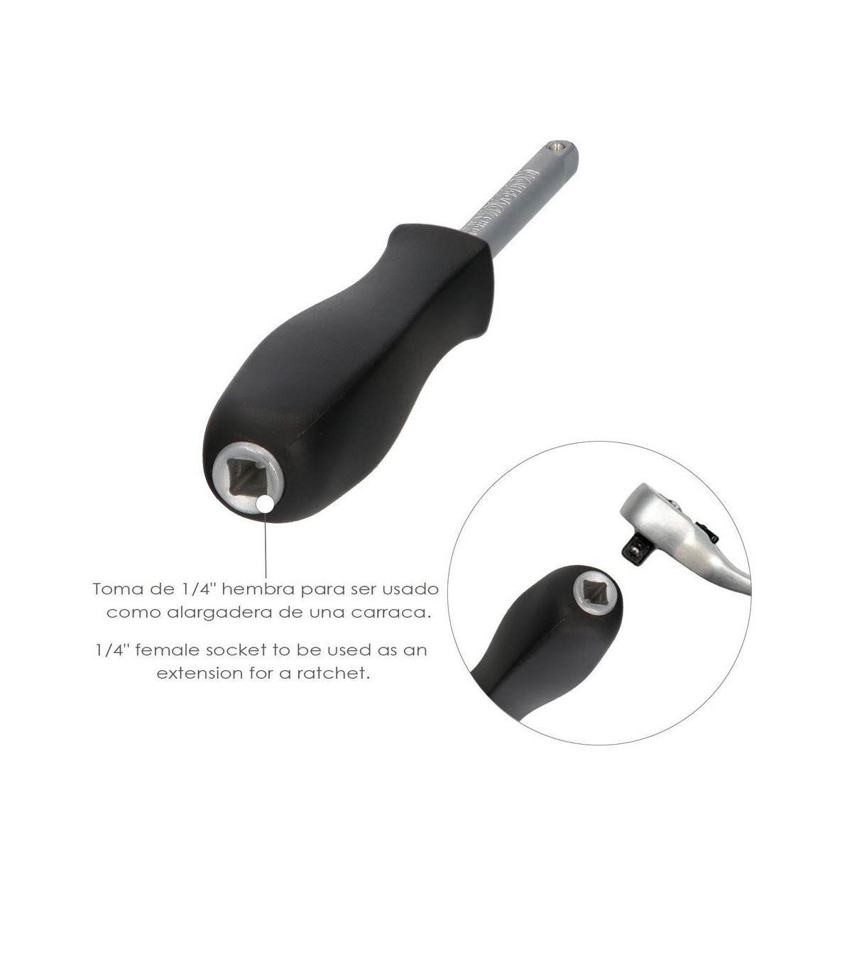 - El mango incorpora una toma de 1/4" hembra para ser usado como alargadera de una carraca.