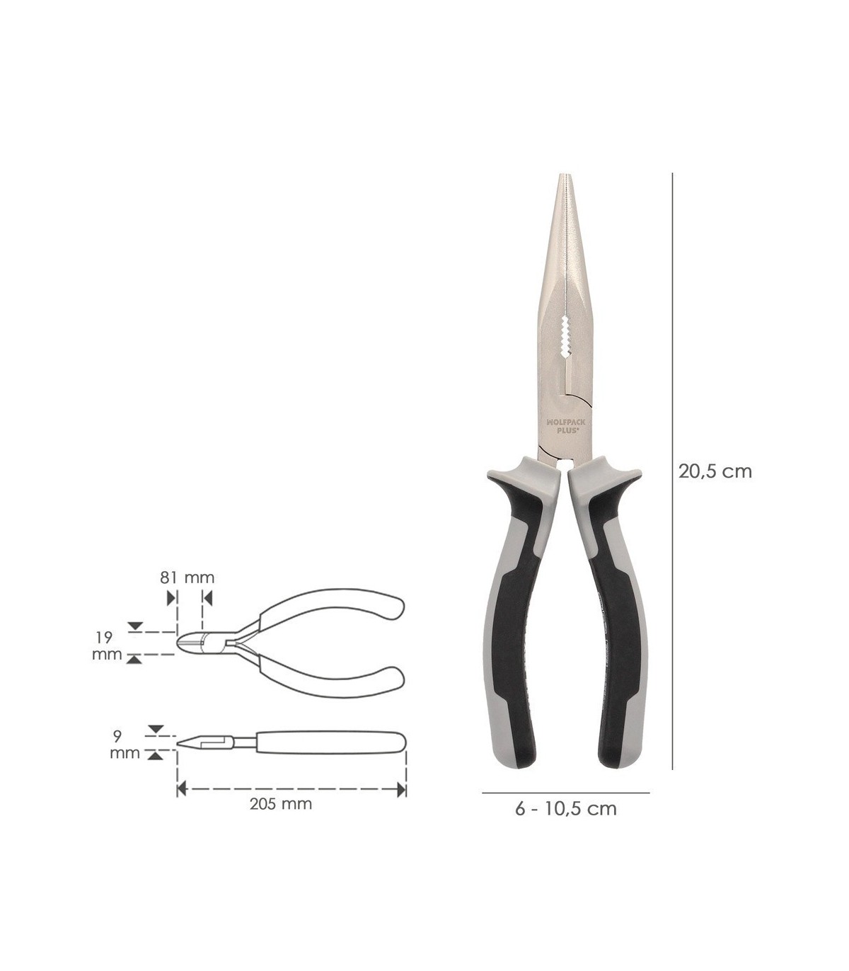 Alicates Boca Recta 200 mm. Acero Cromo Vanadio DIN-ISO 5745 Alicates Punta Recta, Alicates Boca Recta Larga,