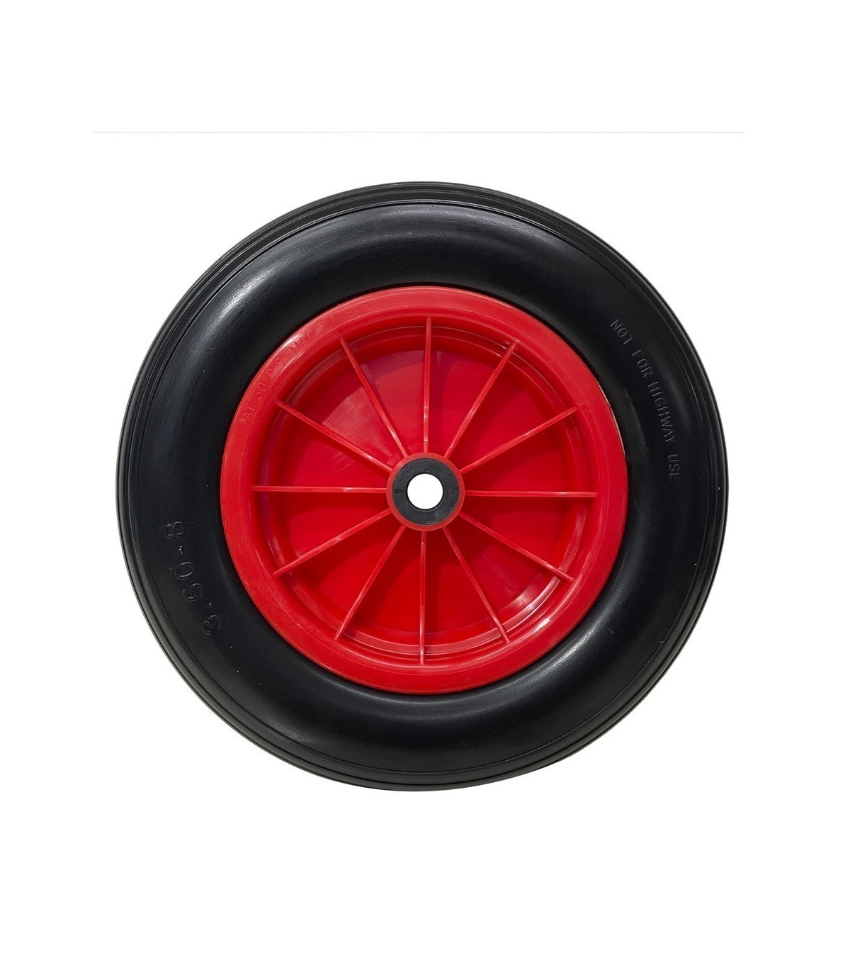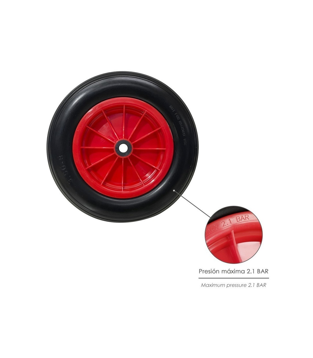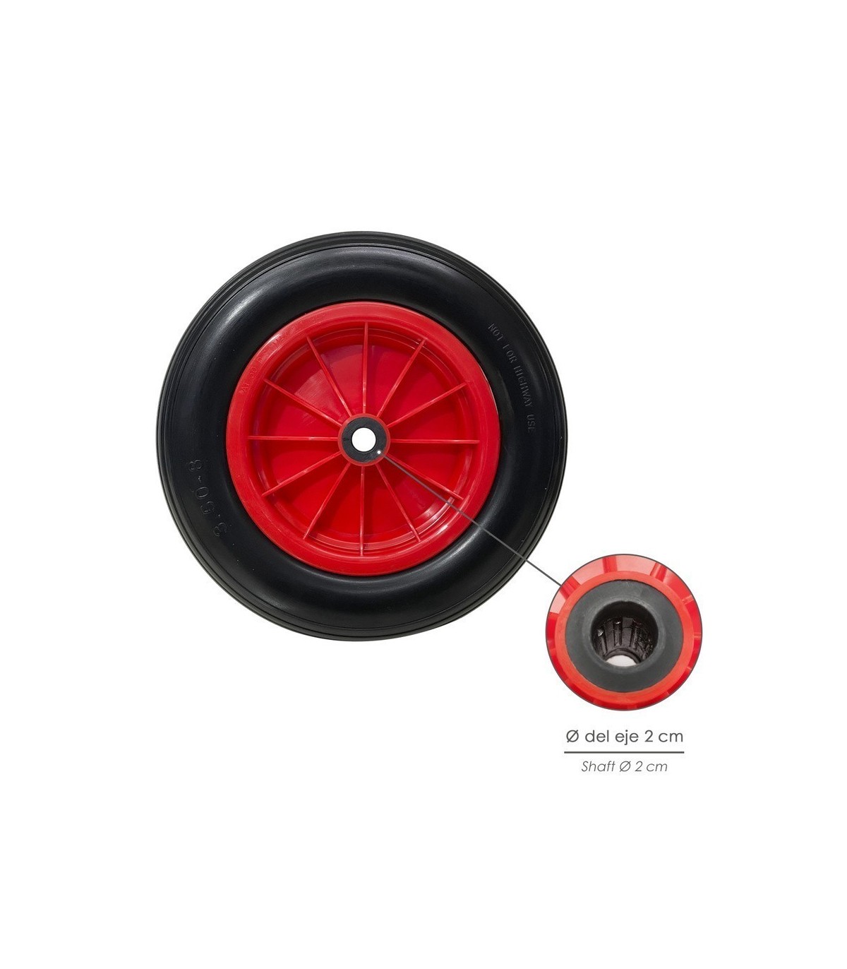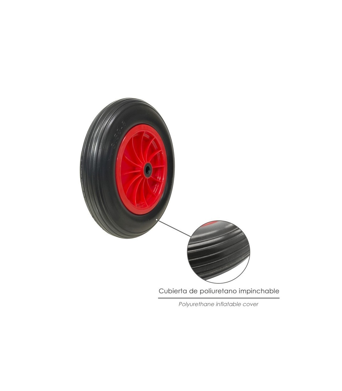 Rueda Carretilla Invernadero Poliuretano Impinchable Llanta Plástico, Diámetro 360 mm. Eje Diámetro 20 mm.