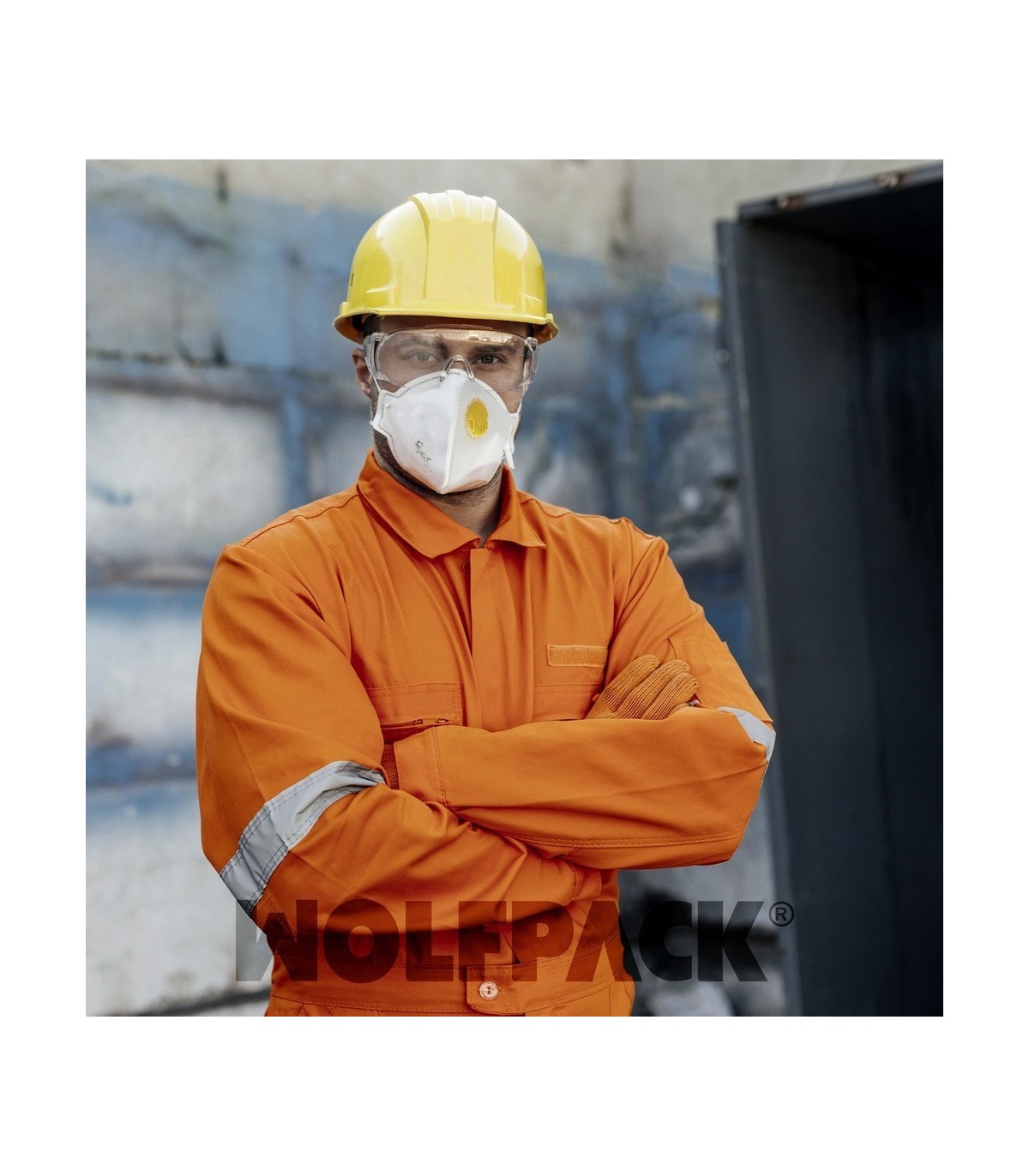 b. Para probar el ajuste de una mascarilla con una válvula de exhalación, coloque ambas manos sobre la máscara e inhale bruscamente. Se debe detectar una presión negativa dentro de la mascarilla.