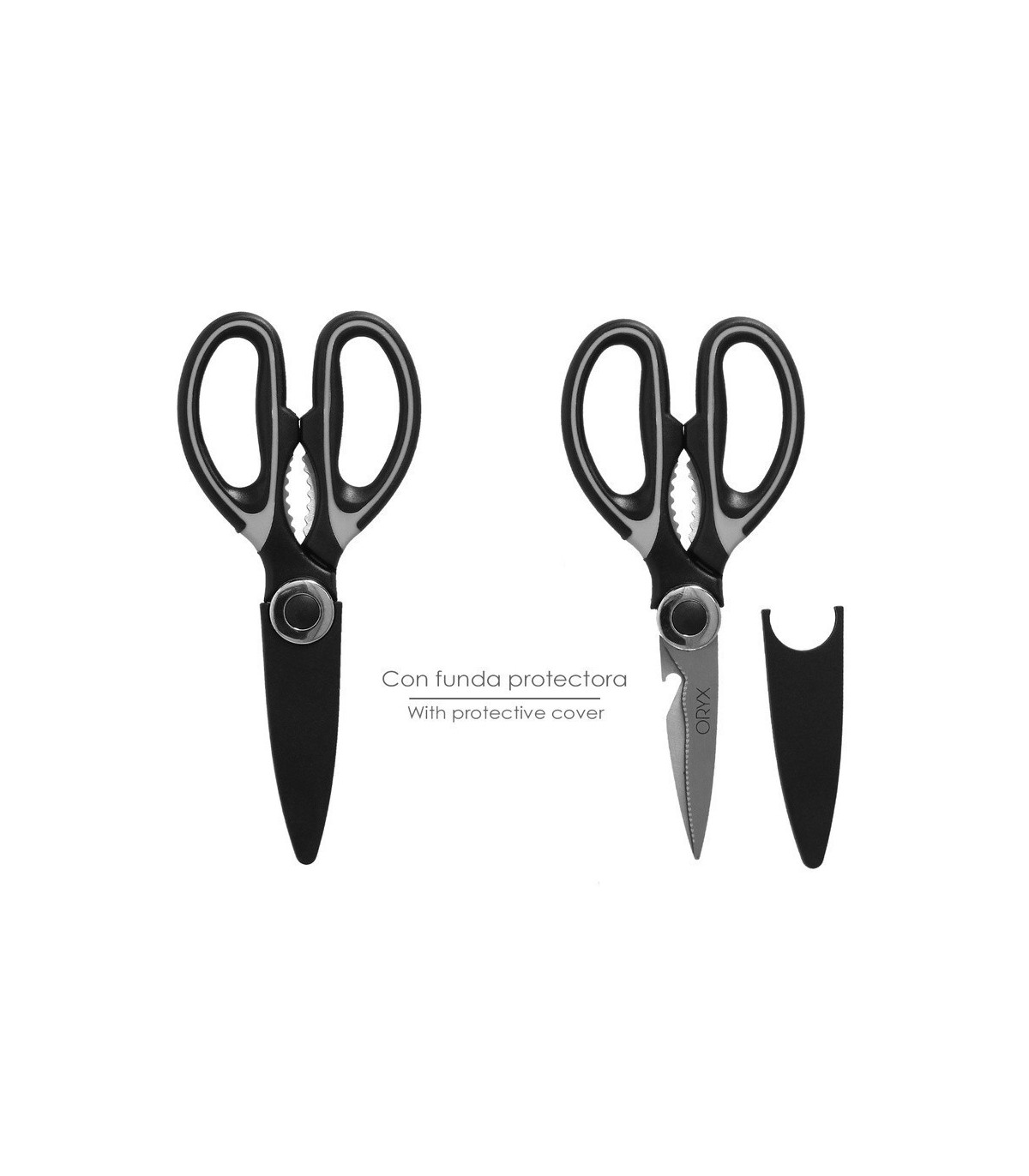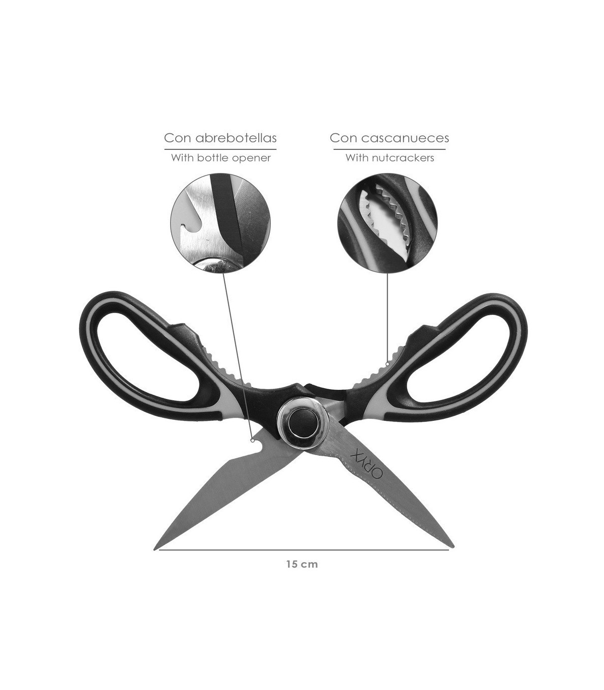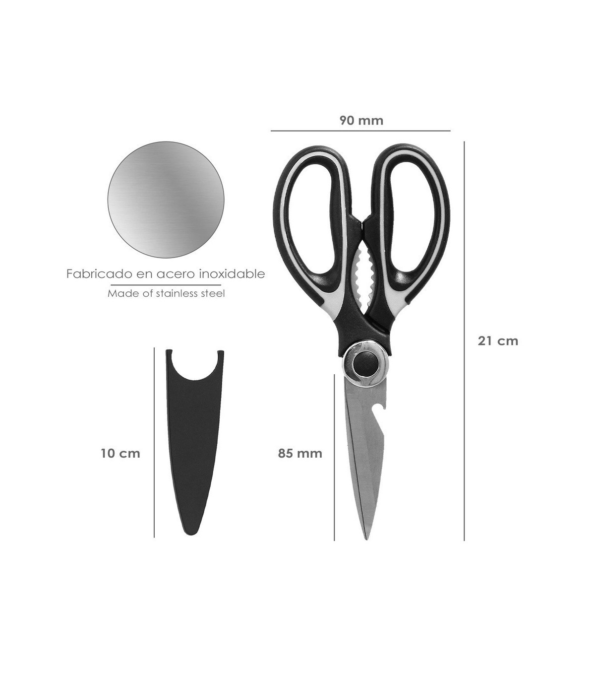 - Artículo conocido como tijeras para alimentos, tijeras de chef, tijeras para cocinar, tijeras multiusos, tijeras con cascanueces, tijera multiusos, alicates marisco.