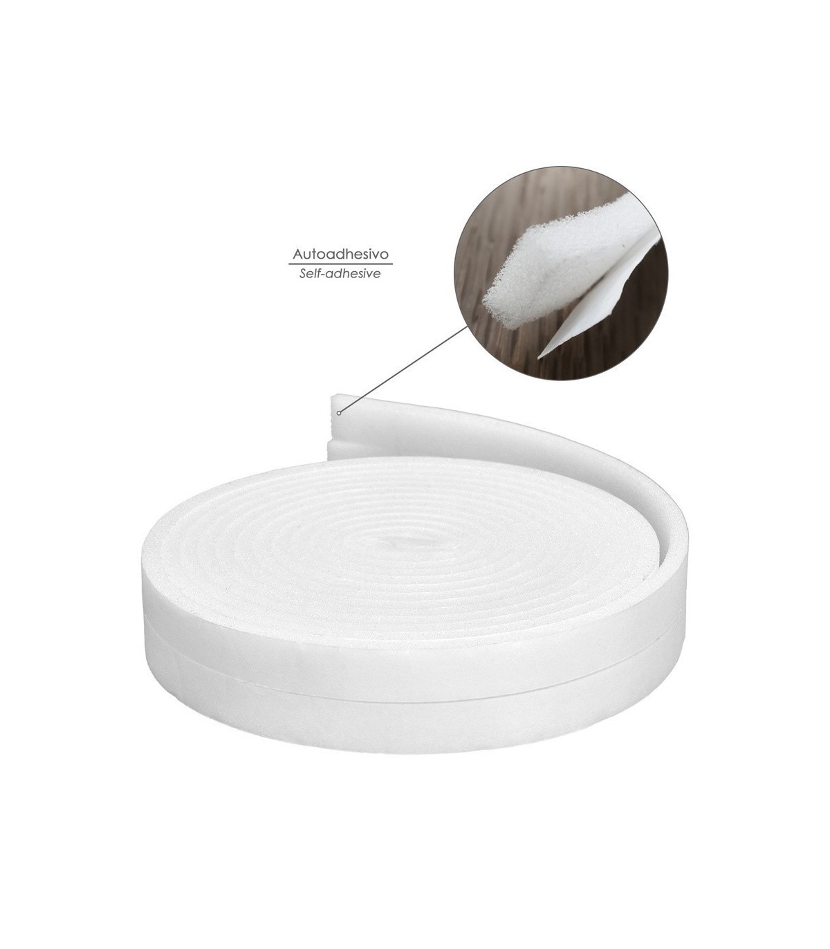 Burlete Espuma Blanco Rollo 8 metros. x 15 mm. Auto Adhesivo Protege Frio, Corrientes Aire, Humedad. Burlete Puerta y Ventana