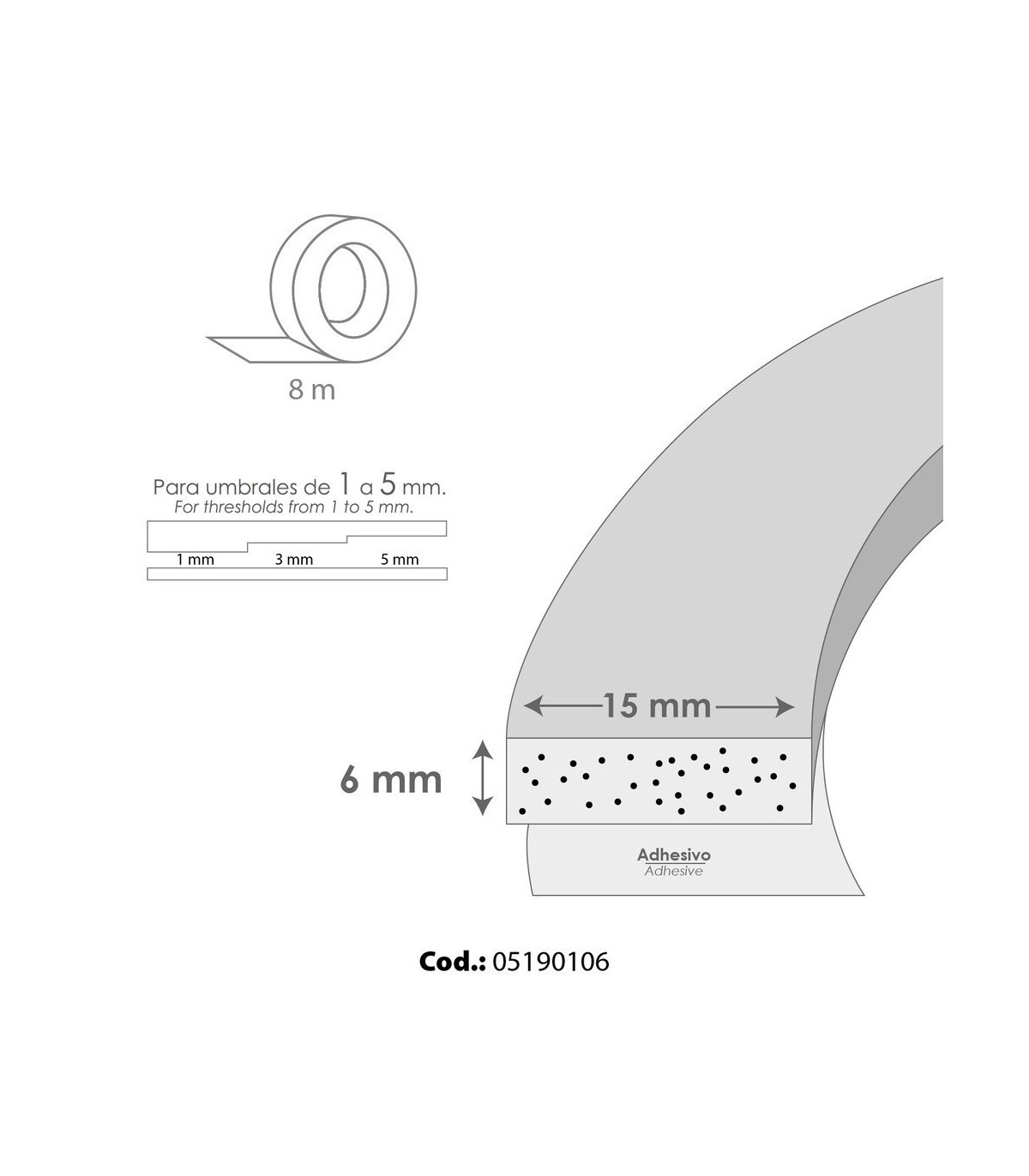 - Rollo: 8 metros x 15 mm.