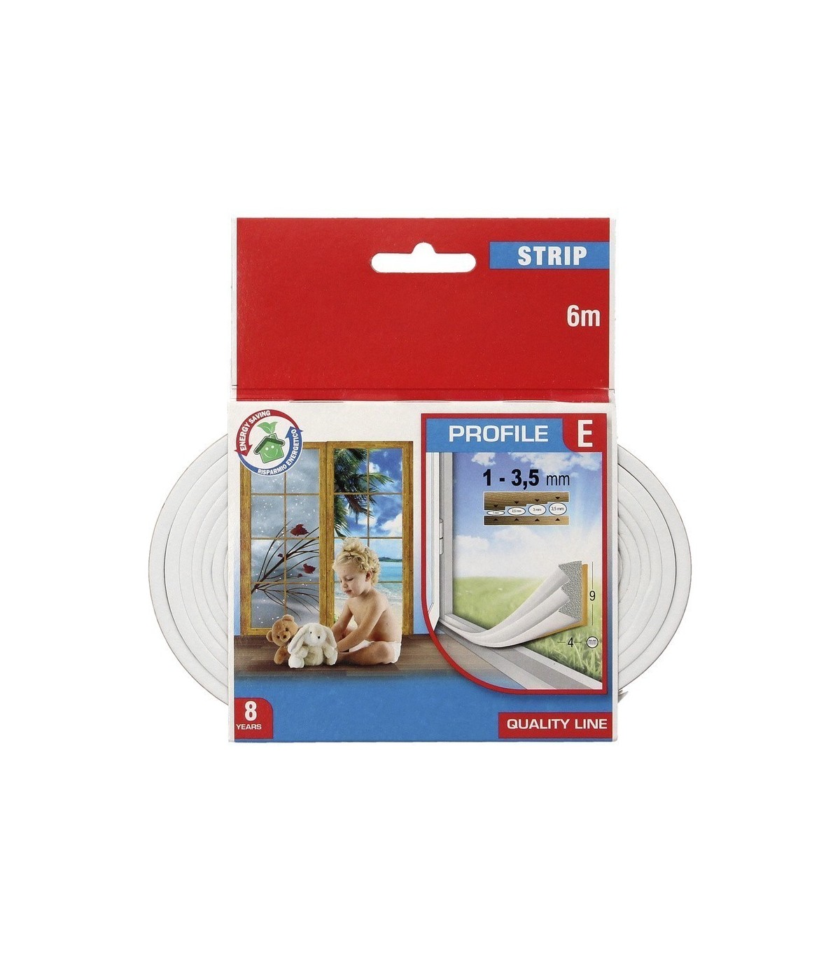 - Perfil en E. Cortavientos de goma blanca para sellar ventanas y puertas. Para umbrales de 1 a 3,5 mm.