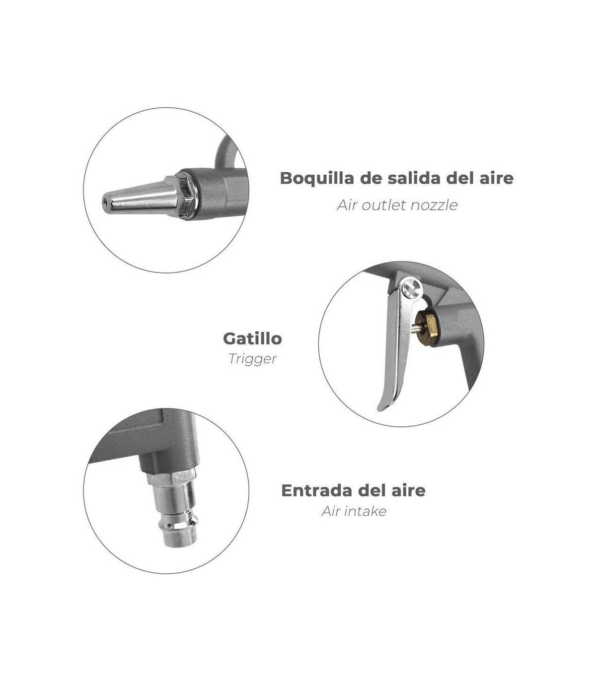 - Artículo conocido como pistola aire compresor, pistola soplado compresor, pistola sopladora aire.
