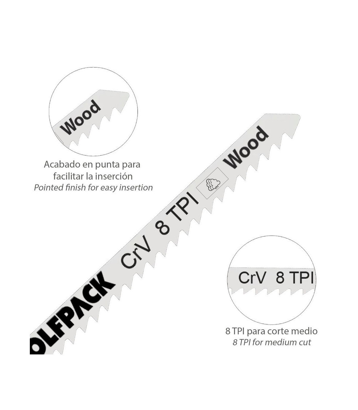 - Artículo conocido como hojas sierra calar, hojas caladora, hoja recambio sierra vaivén.