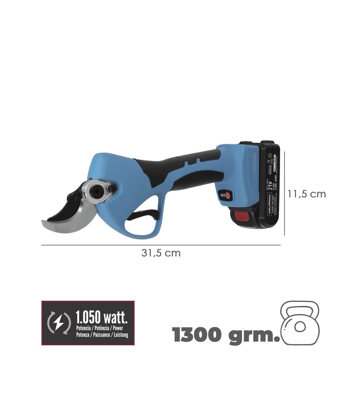 Tijera de podar eléctrica a batería 21V/2Ah con motor de 1050W