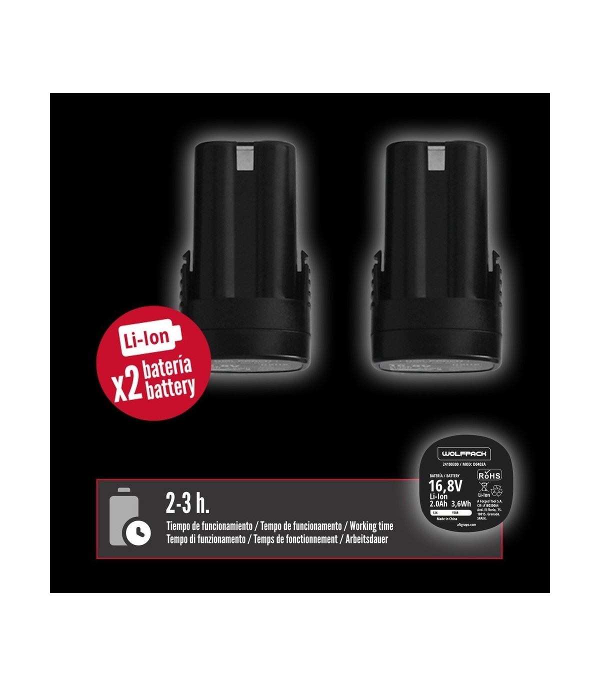 - Voltaje: 16,8 V/2Ah.
